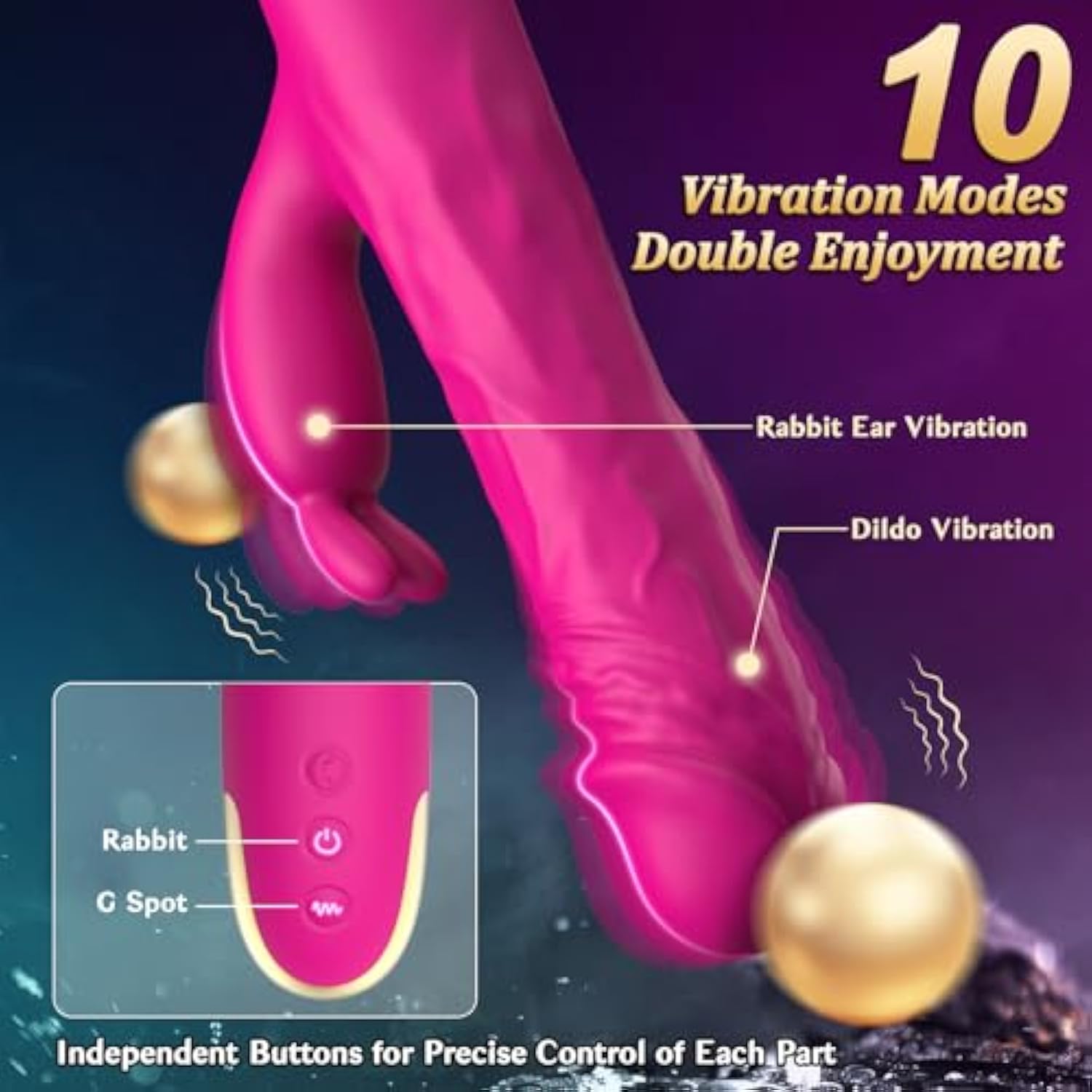 - ? Powerful Thrusting Vibrations: Equipped With 5 Thrusting Speeds, 10 Dildo Vibration Settings, And 10 Rabbit Ear Vibration Modes, This Vibrator Offers An Intensely Customizable Experience. The Independent Motors For The Dildo And Rabbit Ears Provide Stronger, Faster Thrusting And High-Frequency Vibrations, Delivering Powerful Pleasure For The G-Spot And Clitoral Stimulation.