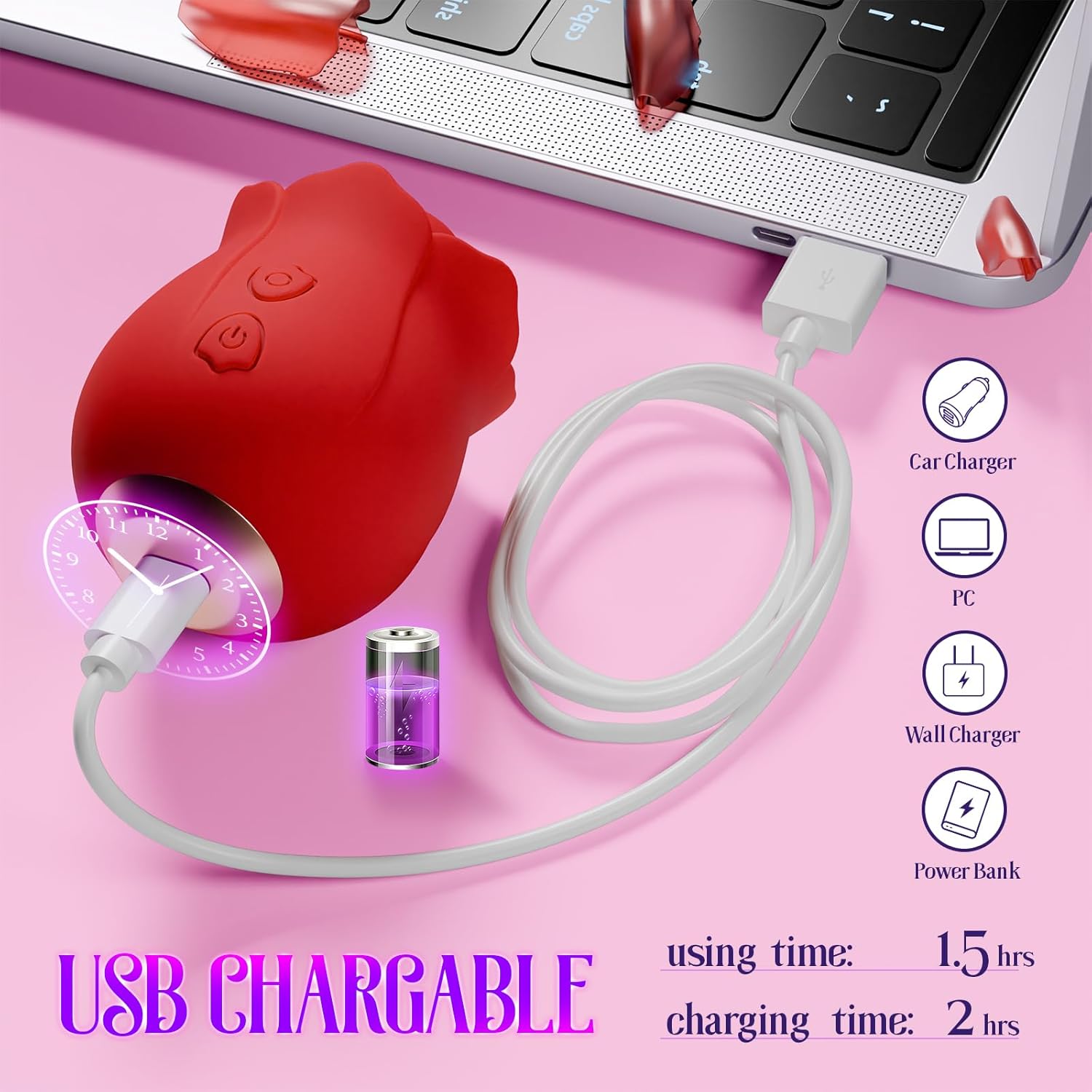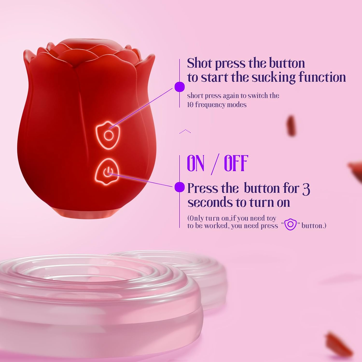 Experience next-level pleasure with this uniquely designed rose-shaped vibrator. Combining powerful suction and vibrating modes, it provides an intense, oral-like sensation for enhanced stimulation. The pulsating suction is visibly strong, delivering deep, satisfying pleasure.10 Tapping & Suction Modes