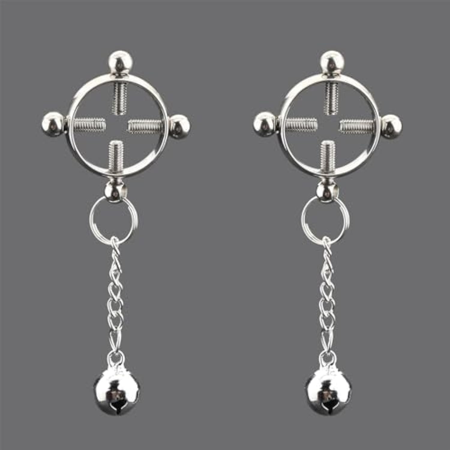 Sexy Nipple Clamps Non Piercing For Women, Screw Adjustable Nipple Clips Non Pierced With Bells, Decorative Body Jewelry Chain Nipple Toys, Breast Clamps Novelty (Style P)