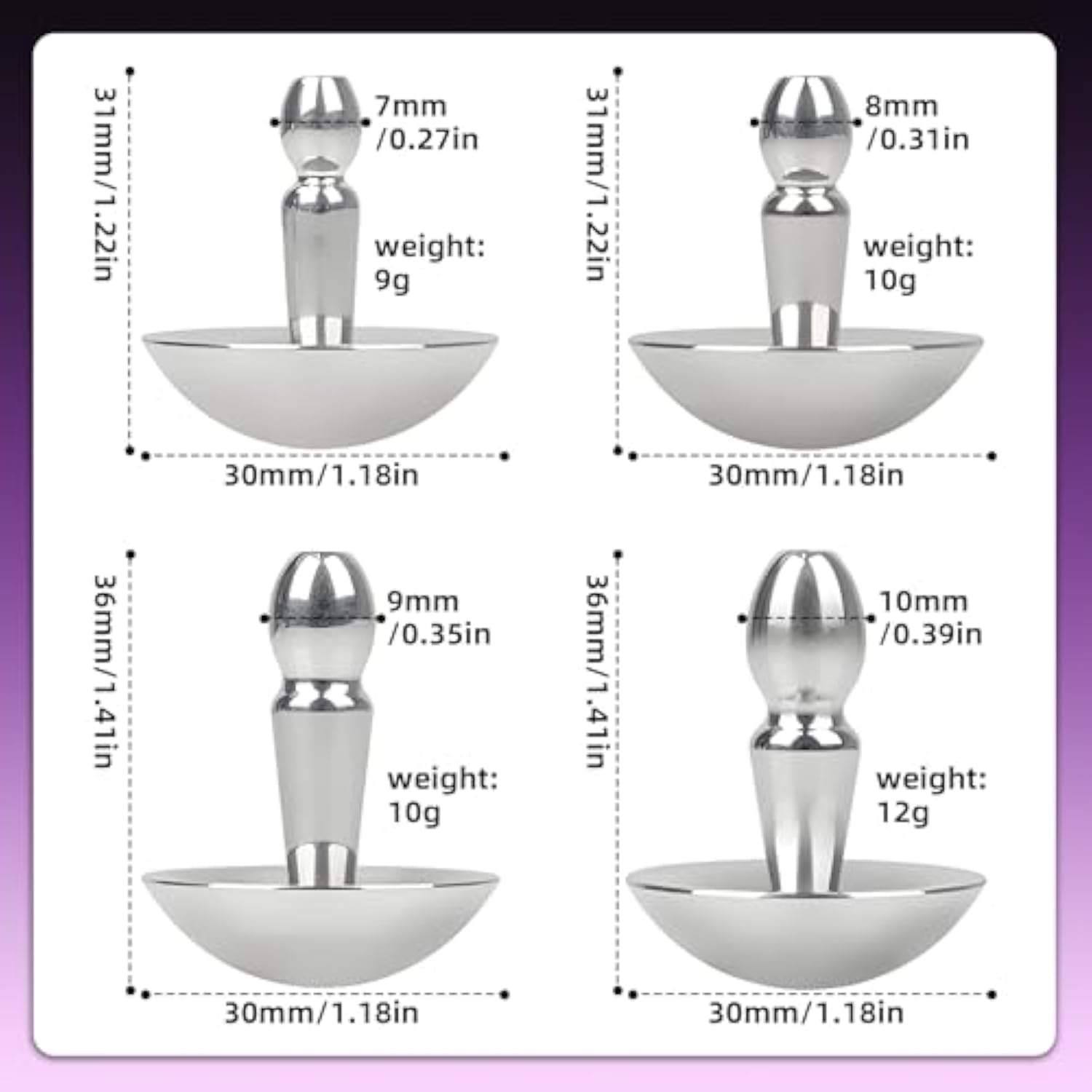 | 1.Material: Made Of Selected High-Quality Metal, Smooth Surface, No Burrs, Exquisite Workmanship, Durable, Non-Toxic And Odorless. The Small Penis Plug Is Perfect For Men Who Like To Masturbate And Seek Stimulation. | | 2.Size: There Are 4 Sizes Of This Urethral Sound, The Diameters Are 7Mm, 8Mm, 9Mm, 10Mm, Different Sizes To Meet Your Different Needs, You Can Pick The Size That You Are Suitable Or Want To Explore, To Bring You The Ultimate Stimulating Sexual Experience. | | 3.Penis Sound?This Urethral Dilator Has A Hollow Design That Can Be Worn For A Long Time, No Need To Remove It When Urinating, And A Half-Circle Design At The Top That Wraps Around The Head Of The Penis To Meet Your Needs. | | 4.Easy To Clean: The Metal Material Is Easy To Clean, The Catheter Needs To Be Cleaned Before And After Use, It Can Be Rinsed Directly With Water, Wiped Clean And Then Stowed Away. | | 5.Male Urethral Play:The Men'S Penis Expander Is Perfect For Gay Men Or Men Seeking Masturbatory Stimulation, Whether You Wear It At Home Or On The Go. | |