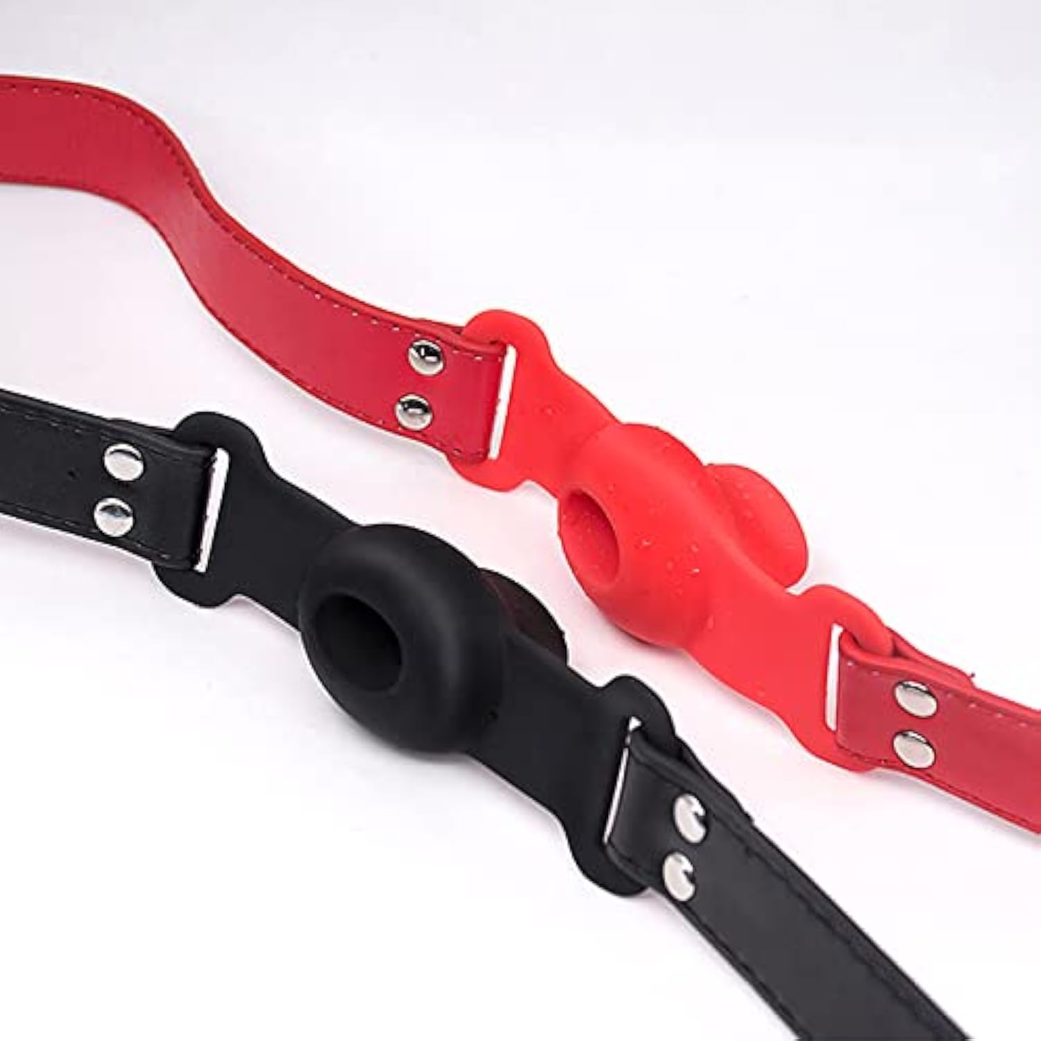 Silicone Ball Gag For Women Mouth Sex Bdsm Starter Kit Male Bondage Open Gags Female Bed Restraint Set Fetish Slave Sexy Toy For Couples (Black)