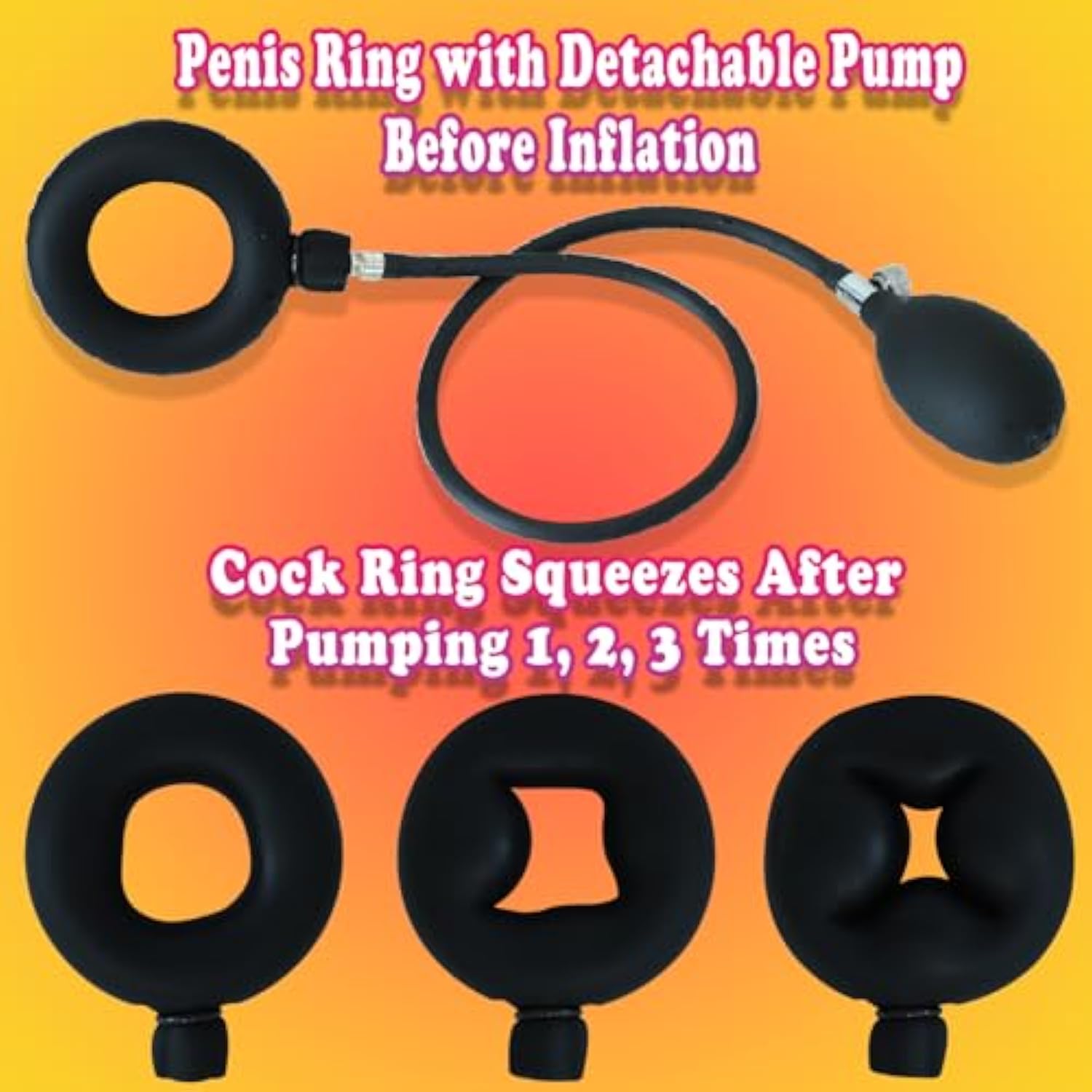 - Fit For Most Sizes: The Inflatable Features Allows The Adult Toys To Swallow The Penis Size From 1.7'' (4.3Cm, Large Girth For Big Cock) To Any Size Smaller Than This. By Manually Pumping Different Air Volume In, You Are Able To Control The Inflation Size Of The Cock Ring And The Pressure Of Squeezing Which Arouse Your Excitement.