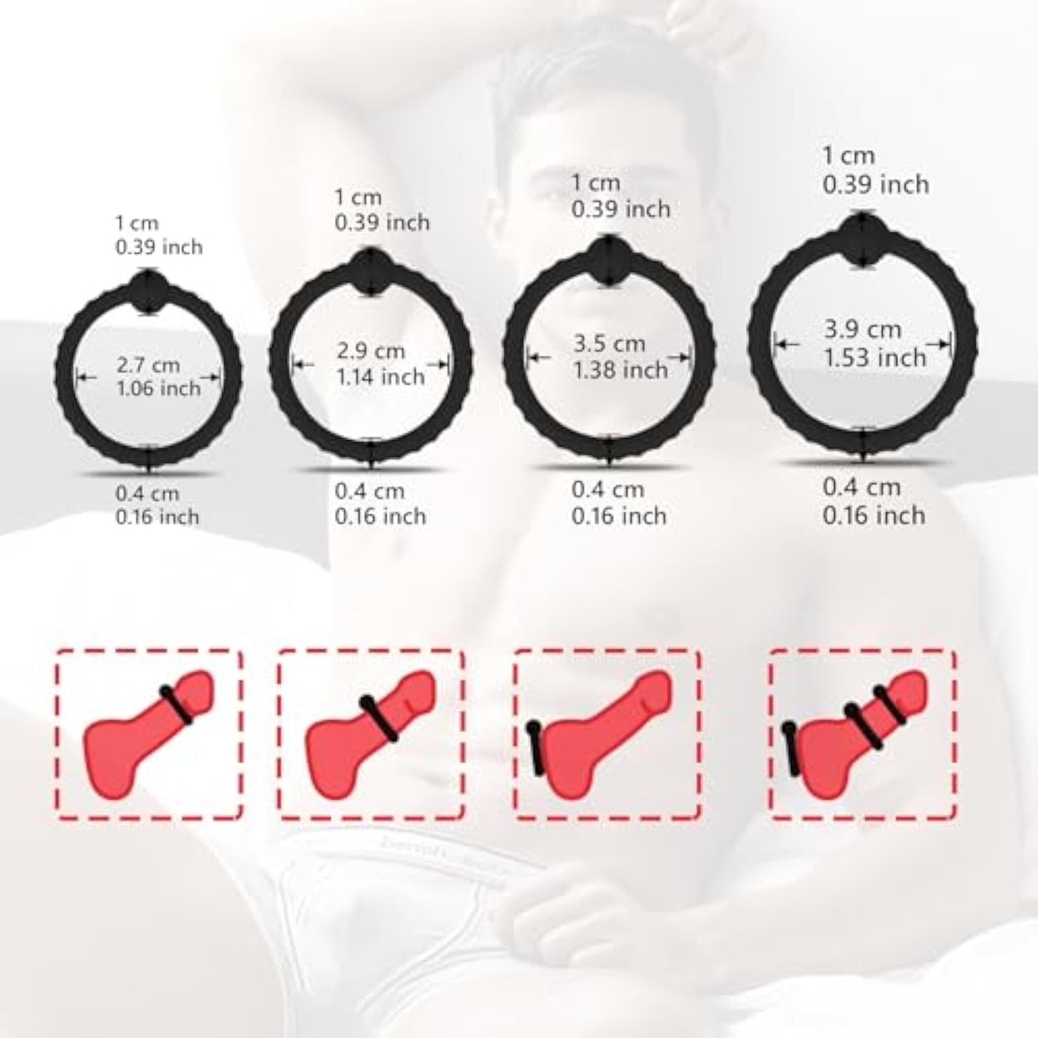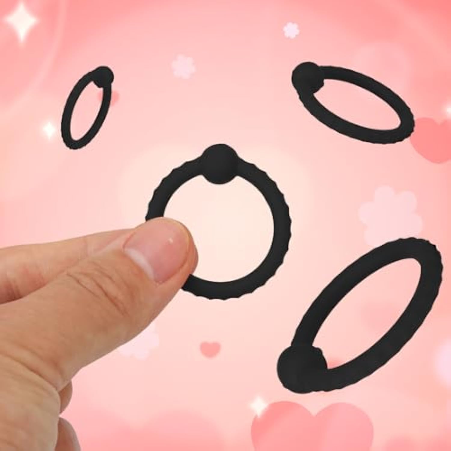 Silicone Cock Ring Penis O Ring With Massage Ball And Patterns For Male Penis Erection Extension Long Lasting Firmness Enlarger Powerful Adult Toys (Black)