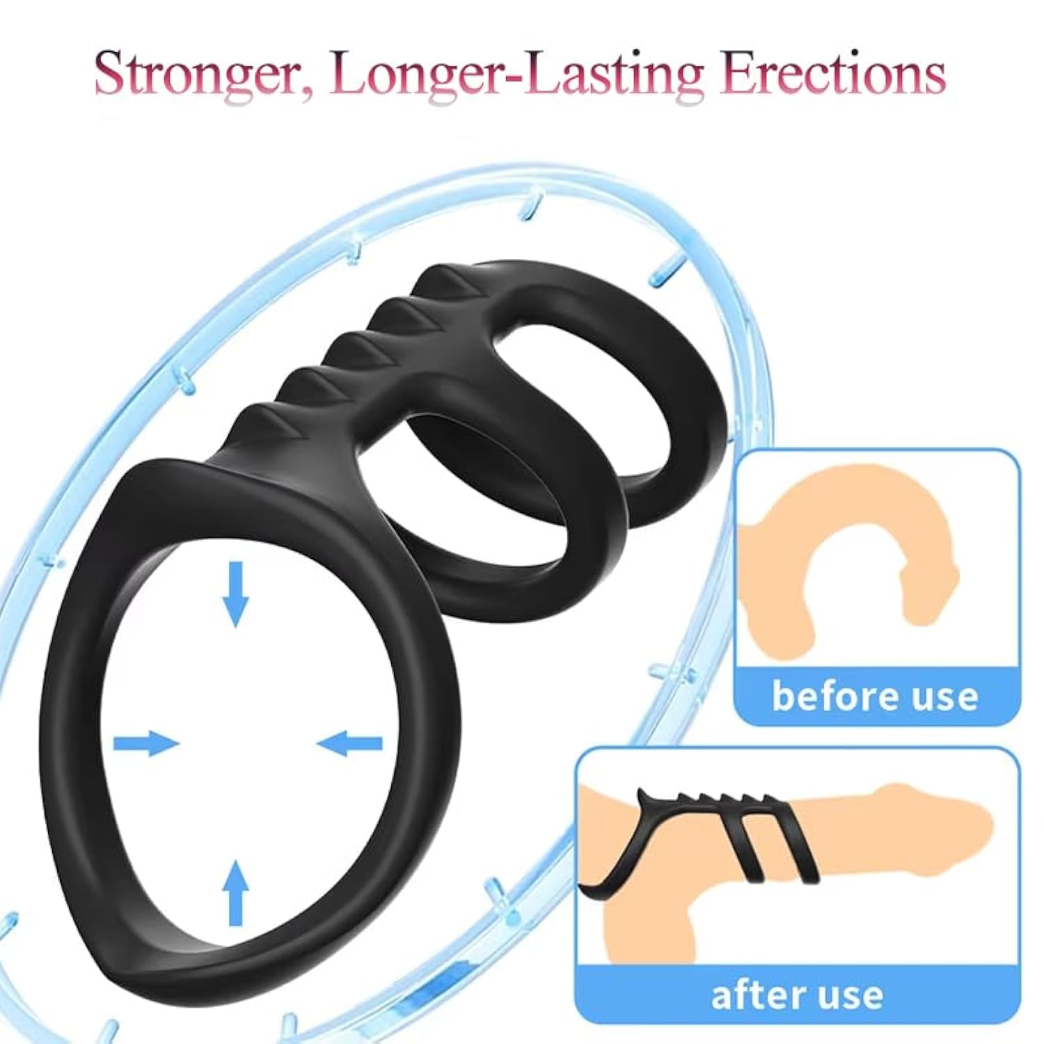 | ?Enhanced Performance Confidence? Designed To Help Men Experience Longer-Lasting Pleasure, Enlarge Their Penis, This Multi-Ring Penis Sleeve Supports Stamina, Delaying Climax, And Enhanced Sensations During Intimacy. A Perfect Bedroom Accessory For Couples Looking To Spice Things Up. | | ?Premium-Grade Stretchy Silicone? Crafted From Ultra-Soft, High-Elasticity Silicone, This Penis Rings Are Body-Safe, Comfortable, And Durable For Long-Term Use. Flexible Enough To Accommodate Most Male Penis Sizes While Maintaining A Snug Fit. | | ?Stimulating Textured Design? The Surface Features Raised Nubs And Stimulating Ridges That Enhance Pleasure For Both Partners. Enjoy A New Level Of Tactile Excitement With Every Movement. | | ?Versatile Dual-Ring Structure? The Multi-Loop Design Provides Better Stability And Support, Allowing For Enhanced Firmness And Delayed Performance. Ideal For Those Looking For A Secure And Reliable Fit. Perfect For Couple Sex Game Play. | | ?Discreet, Easy To Clean Reusable? Completely Waterproof And Simple To Clean With Warm Water And Mild Soap. Compact And Discreet For Travel Or Home Storage β Your Intimate Secret Stays Safe. | |