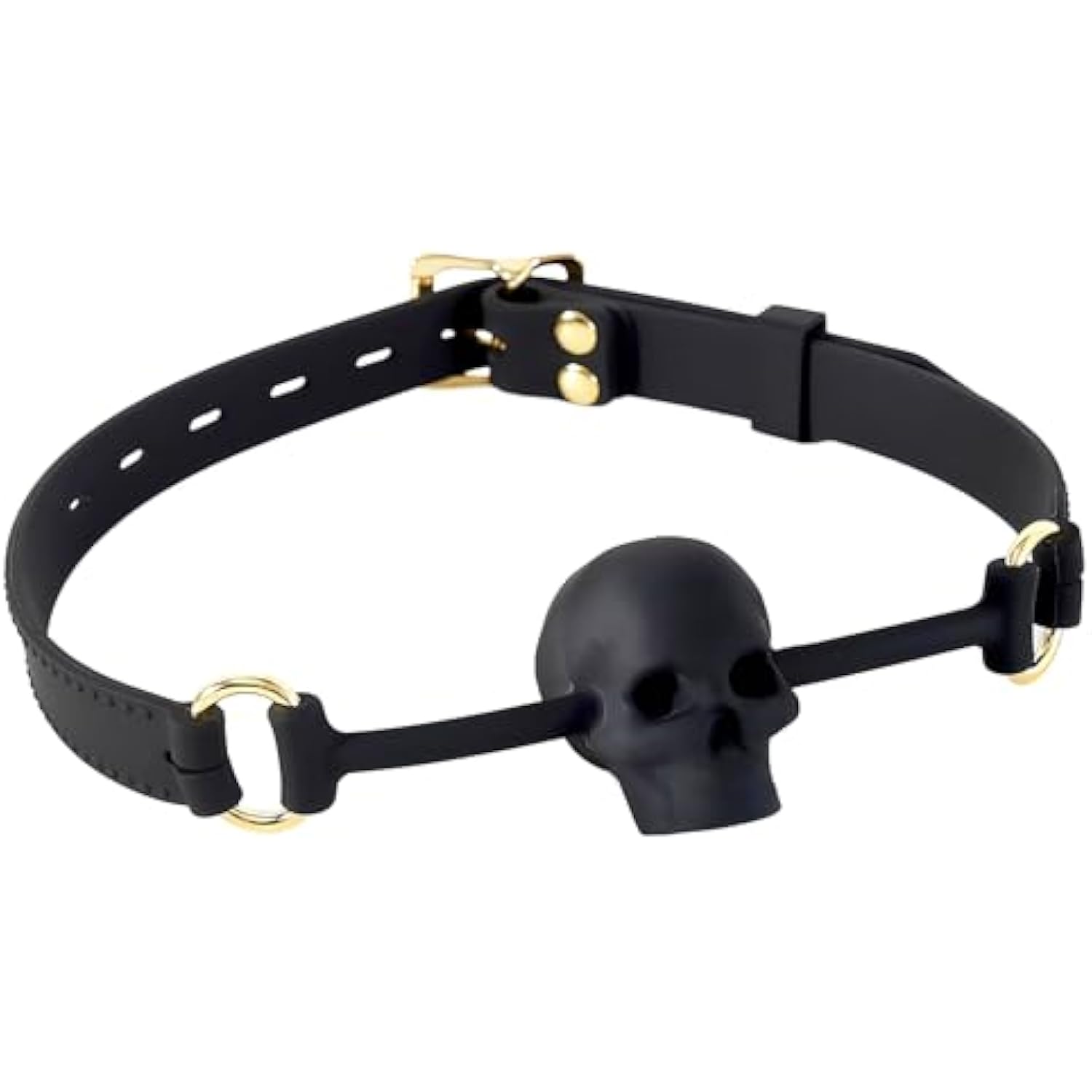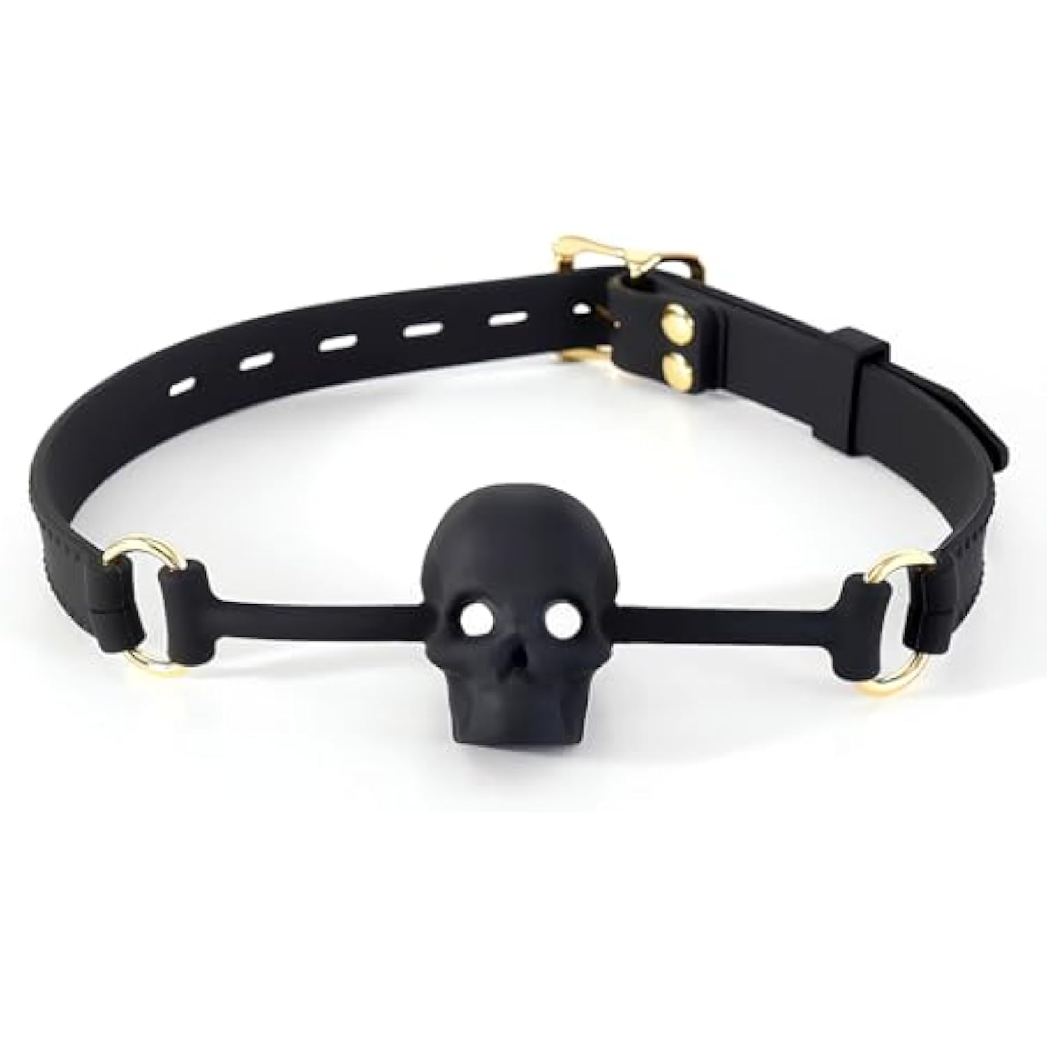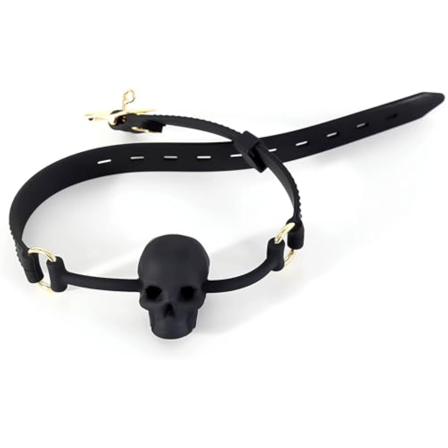 Silicone Mouth Ball Gag Breathable Skull Shape Open Mouth Gag With Adjustable Strap Sm Restraints Role Play Fetish Sex Toys For Women Men (Black)