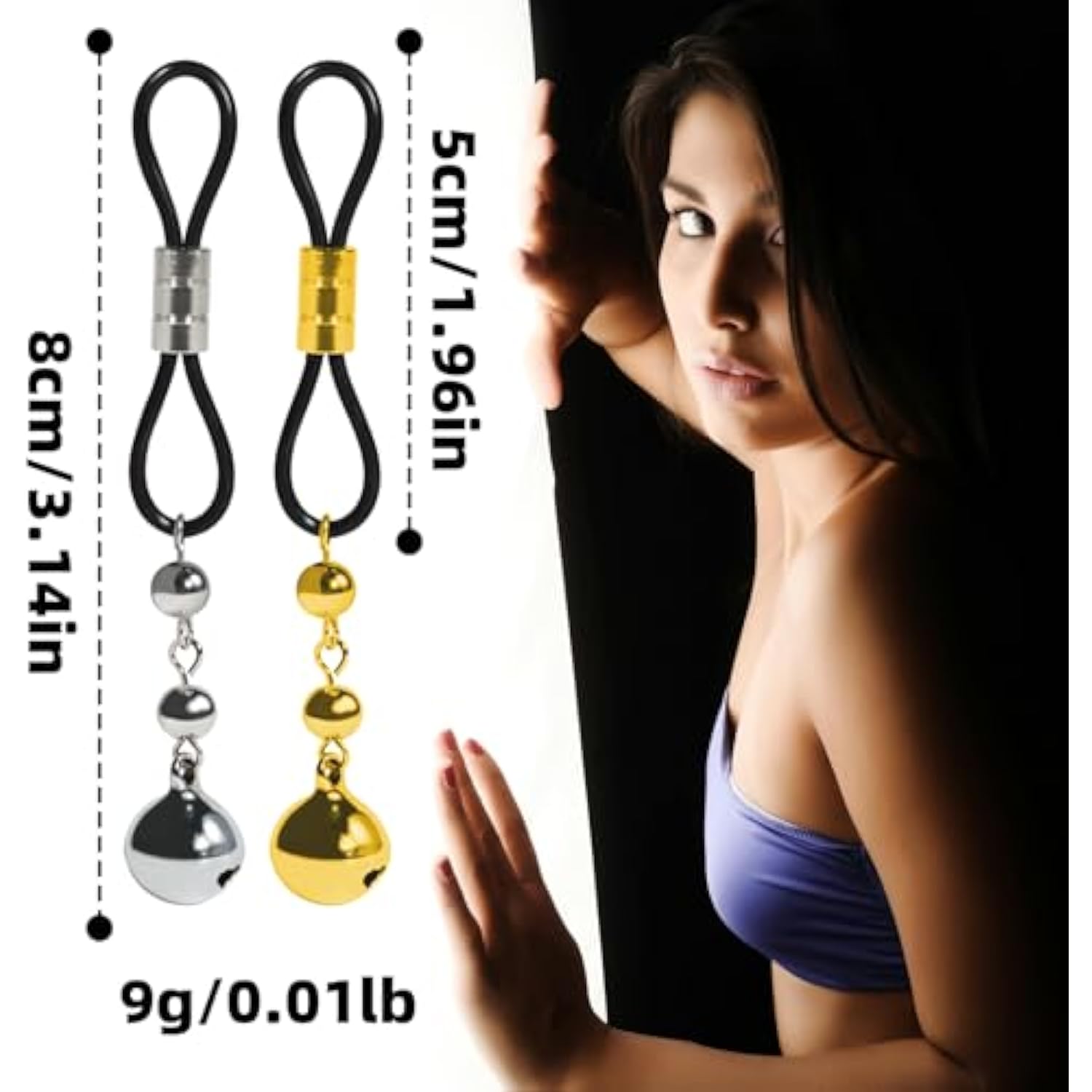 Silicone Nipple Clips Bell Clamps Non Pierced Adjustable Ring Weighted Couples Adult Massage Toning Sex Toys (Gold)