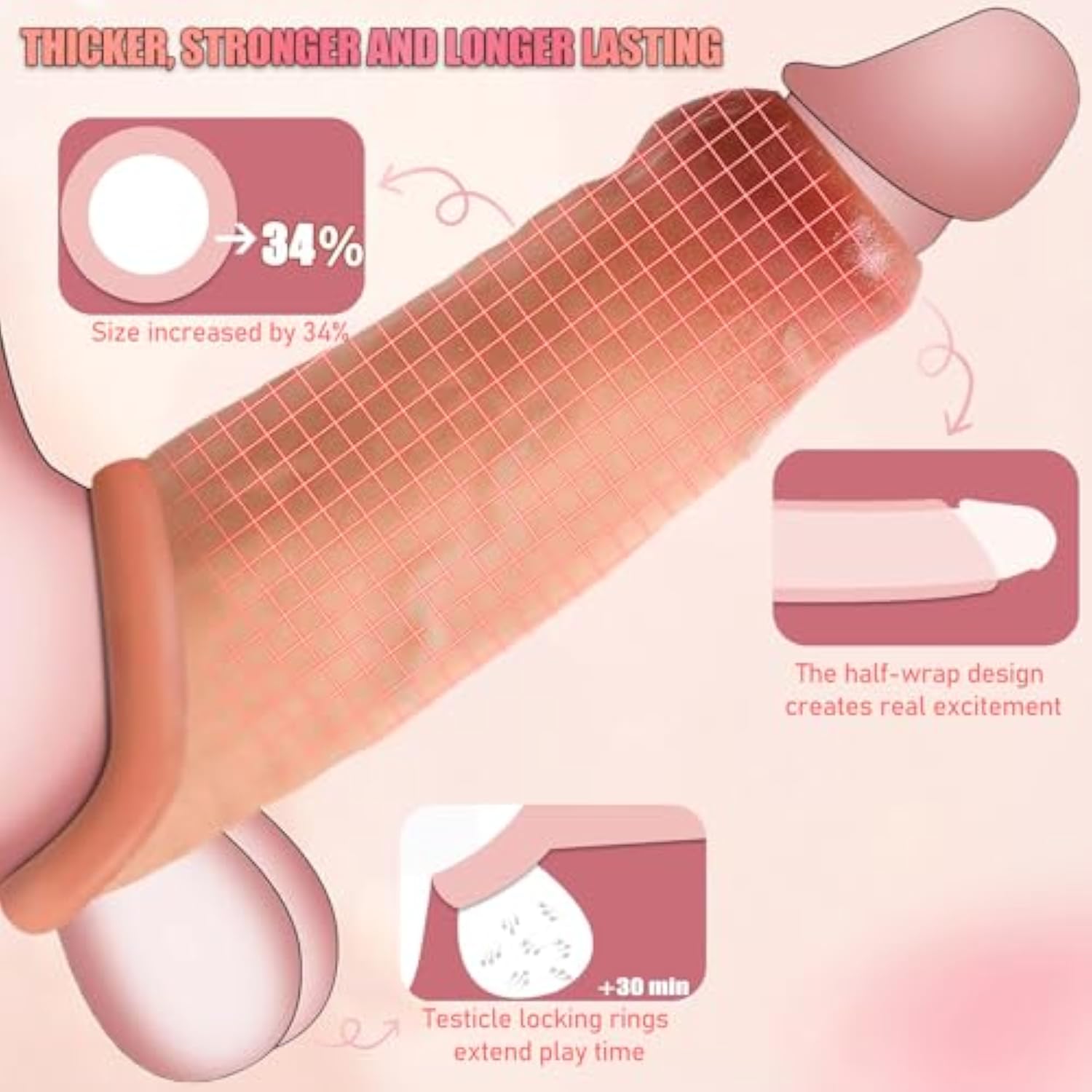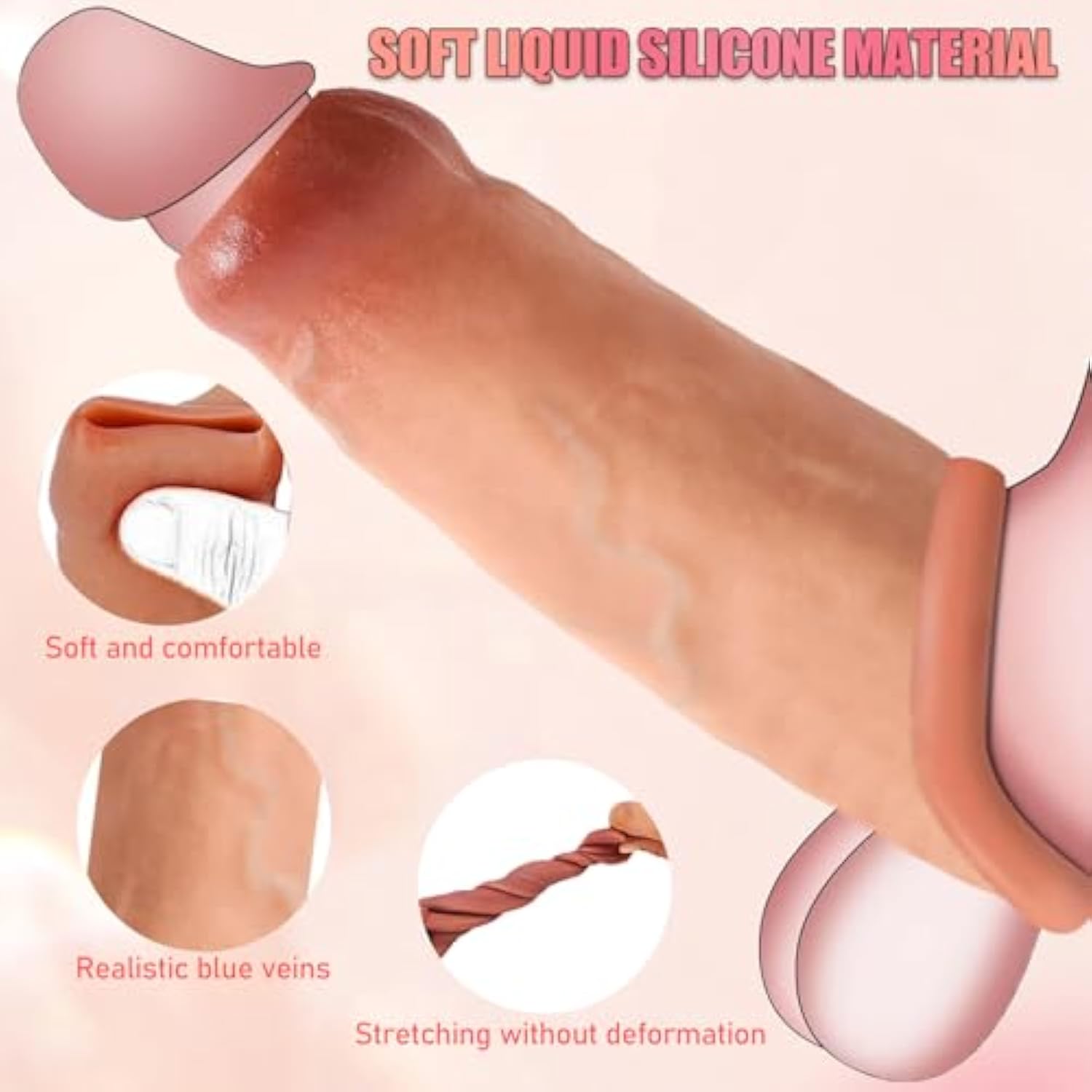 Silicone Realistic Penis Cuffs Realistic Penis Sleeve Penis Extender For Penis Enlargement And Time Prolongation Sex Toys For Men Extreme Sex Toyset Men Couples Enlarge Prolong