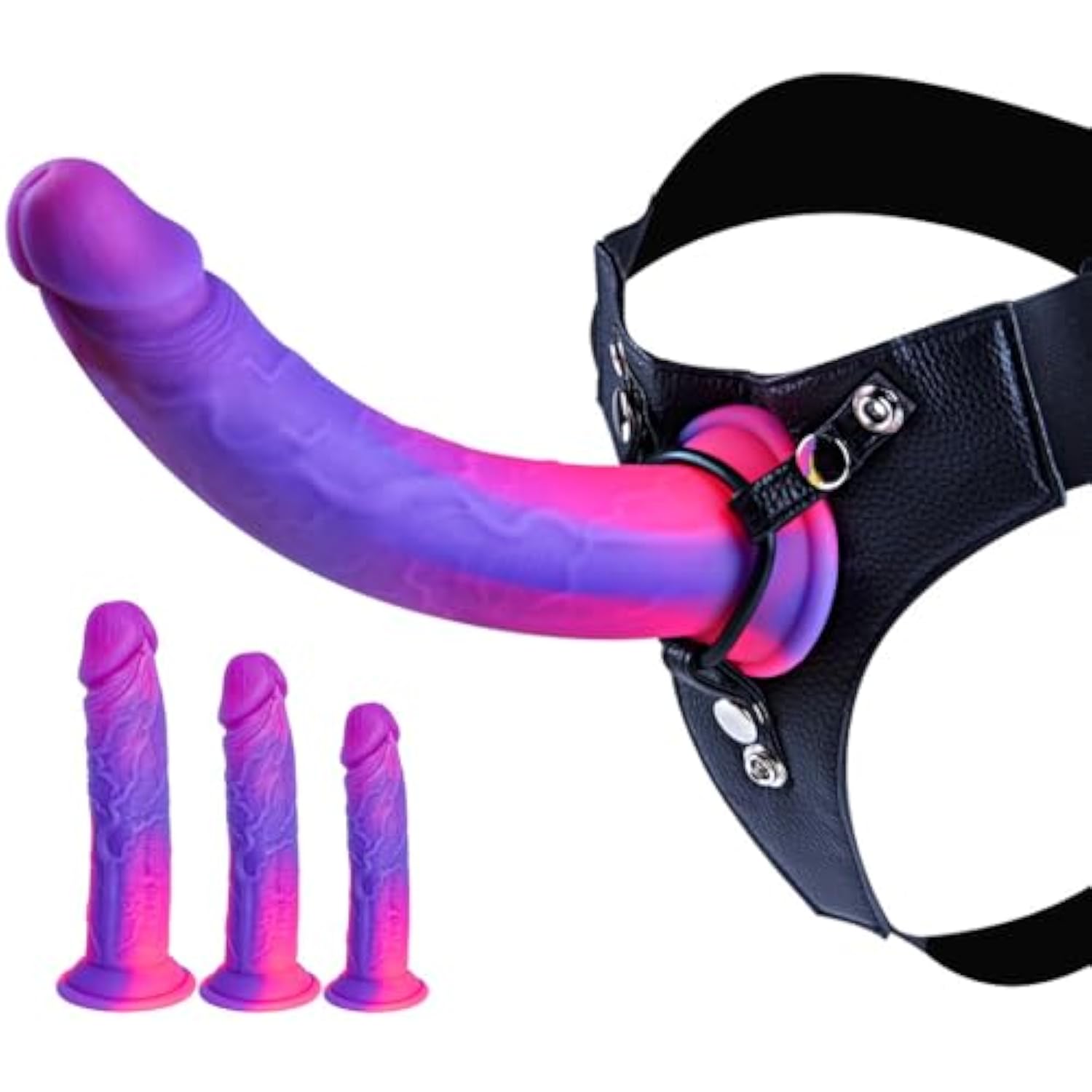 Silicone Realistic Strap On Fantasy Dildo, Wearable Strapon Harness With 3 Pcs Monster Anal Dildo With Suction Cup Lesbian Toy, 7 Inch 8 Inch 9 Inch Beginner Purple Dildos Sex Toy For Women Couples