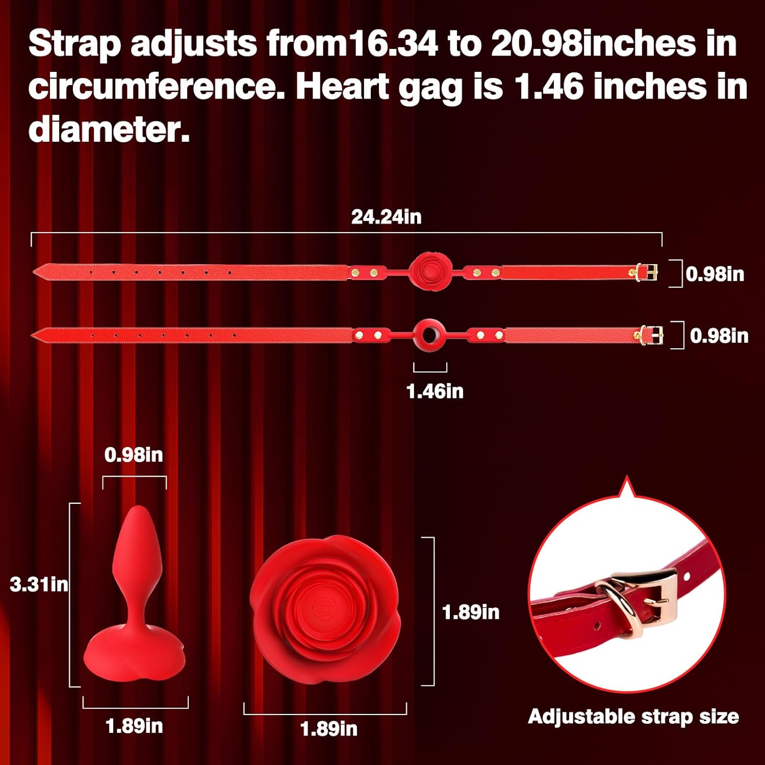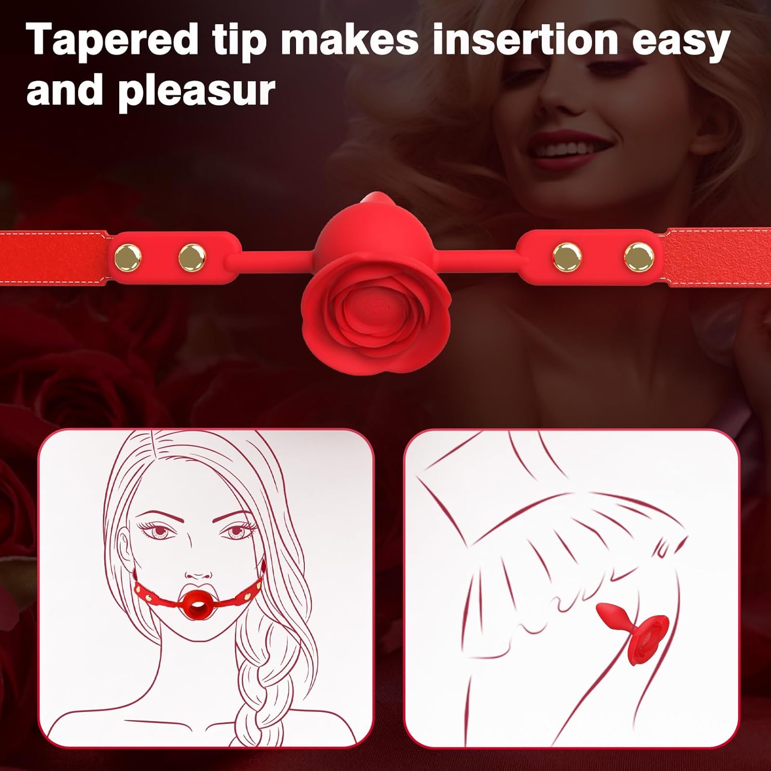 Romantic Rose Ball Gag – Silicone Breathable Mouth Gag with Adjustable Straps Enhance intimate moments with a unique twist on a classic romantic gesture. This red rose ball gag adds an element of passion and restraint, making it a captivating addition to your collection. - Elegant Rose Design – A striking red rose adornment transforms this gag into a sensual statement piece, combining beauty with restraint.