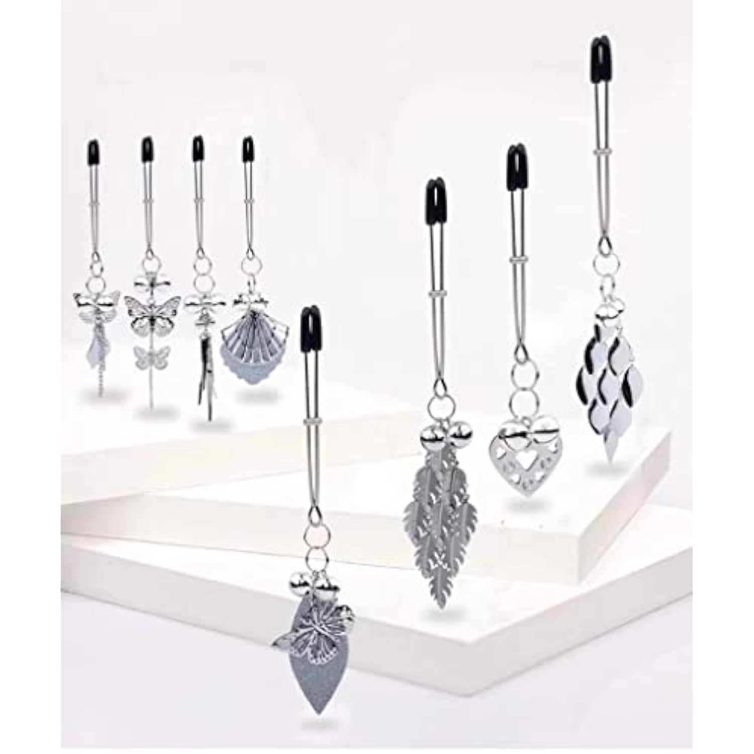 Silver Butterfly Pendant Bell Nipple Clamps, Adjustable Breast Nipple Clamps, Papilla Straighteners Corrector Nipple Shield Nipple Clamps Adjustable Breast Clamps (H)