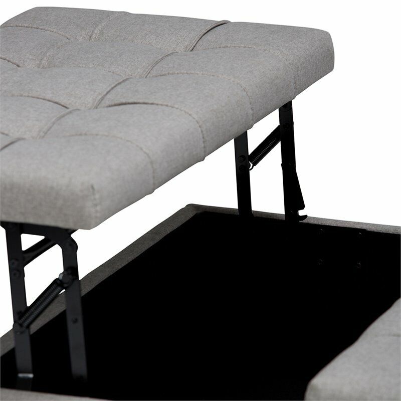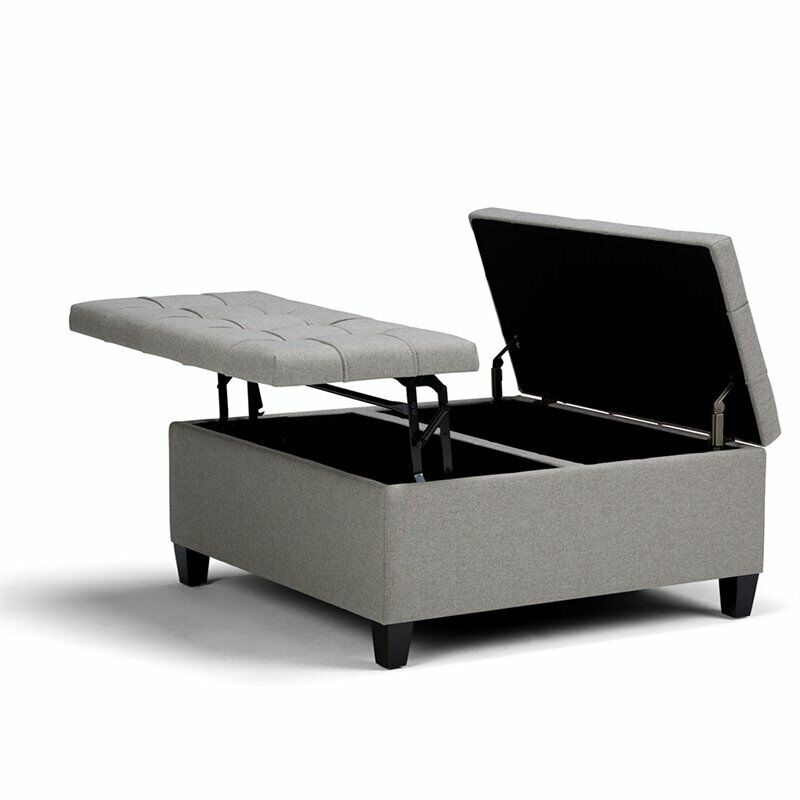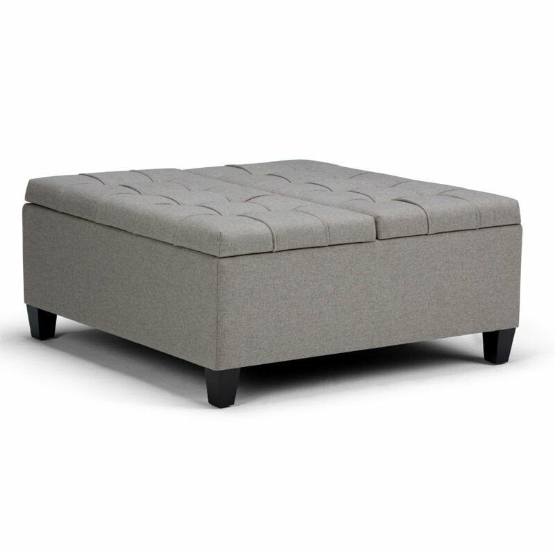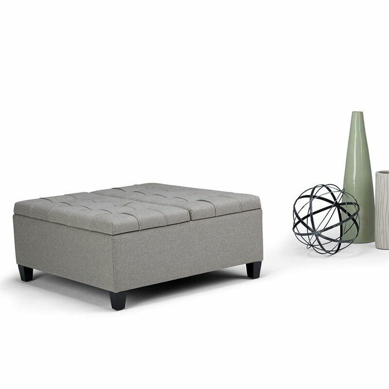Simpli Home Harrison 36" Transitional Square Coffee Table in Dove Gray Fabric