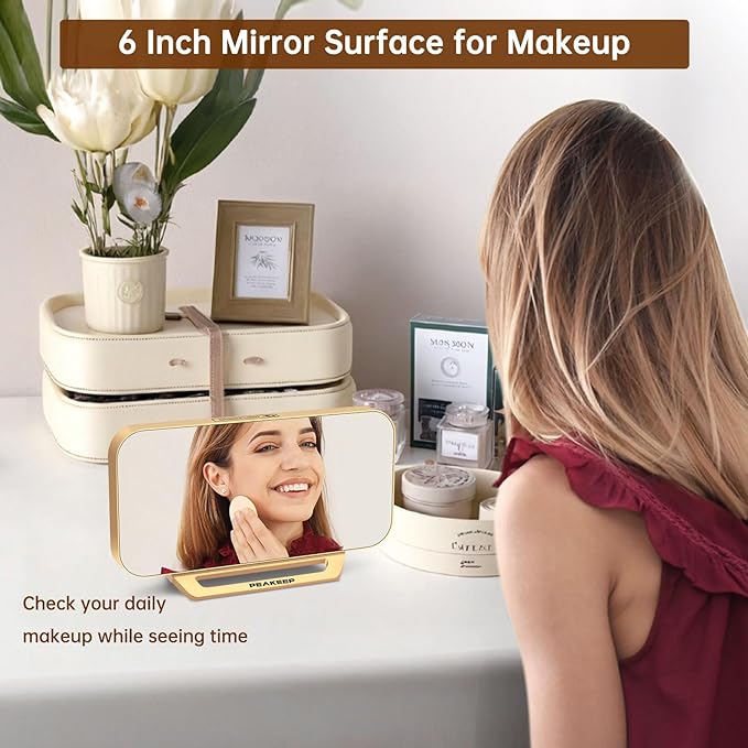 - ๐๐ข๐ซ๐ซ๐จ๐ซ ๐๐ข๐ ๐ข๐ญ๐๐ฅ ๐๐ฅ๐จ๐๐ค๐ฌ ๐๐จ๐ซ ๐๐จ๐ฆ๐ ๐รฉ๐๐จ๐ซ ๐๐๐๐ซ๐จ๐จ๐ฆ ๐๐๐๐๐ฌ๐ฌ๐จ๐ซ๐ข๐๐ฌ: Peakeep alarm clocks boast a sleek and stylish golden casing, complementing any home office dรฉcor or bedroom desk accessories. The minimalist aesthetic desktop stand makes the clock remains stable and prominently visible at all times. The modern mirror-like clock face not only adds a touch of elegance but also ensures time is legible from a variety of angles.