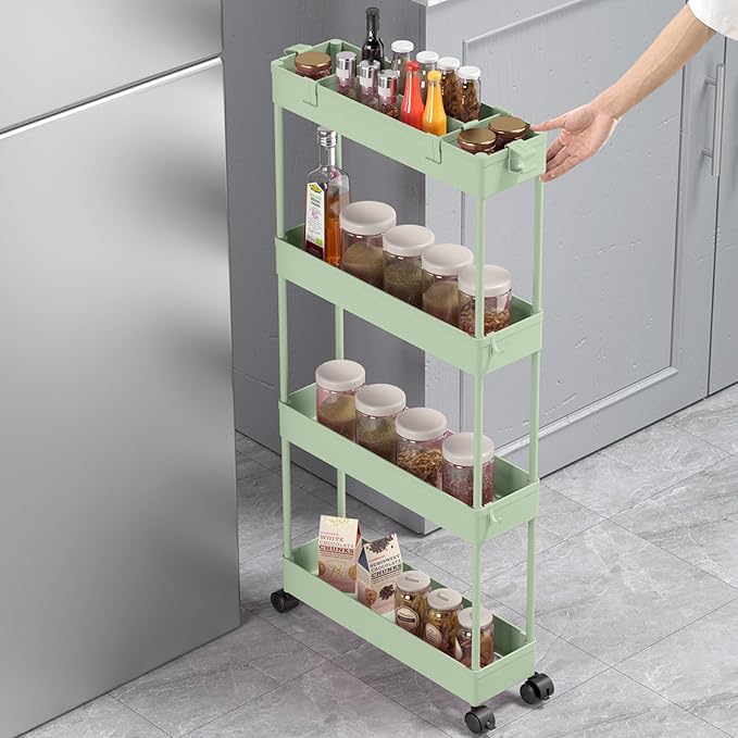 - Flexible Slim Storage Cart: The bathroom rolling utility cart is equipped with 360°rotating wheels, the storage cart can be moved to any corner of the house to store items. You can flexibly use it for storage in office, bathroom, laundry room, kitchen, narrow places,etc