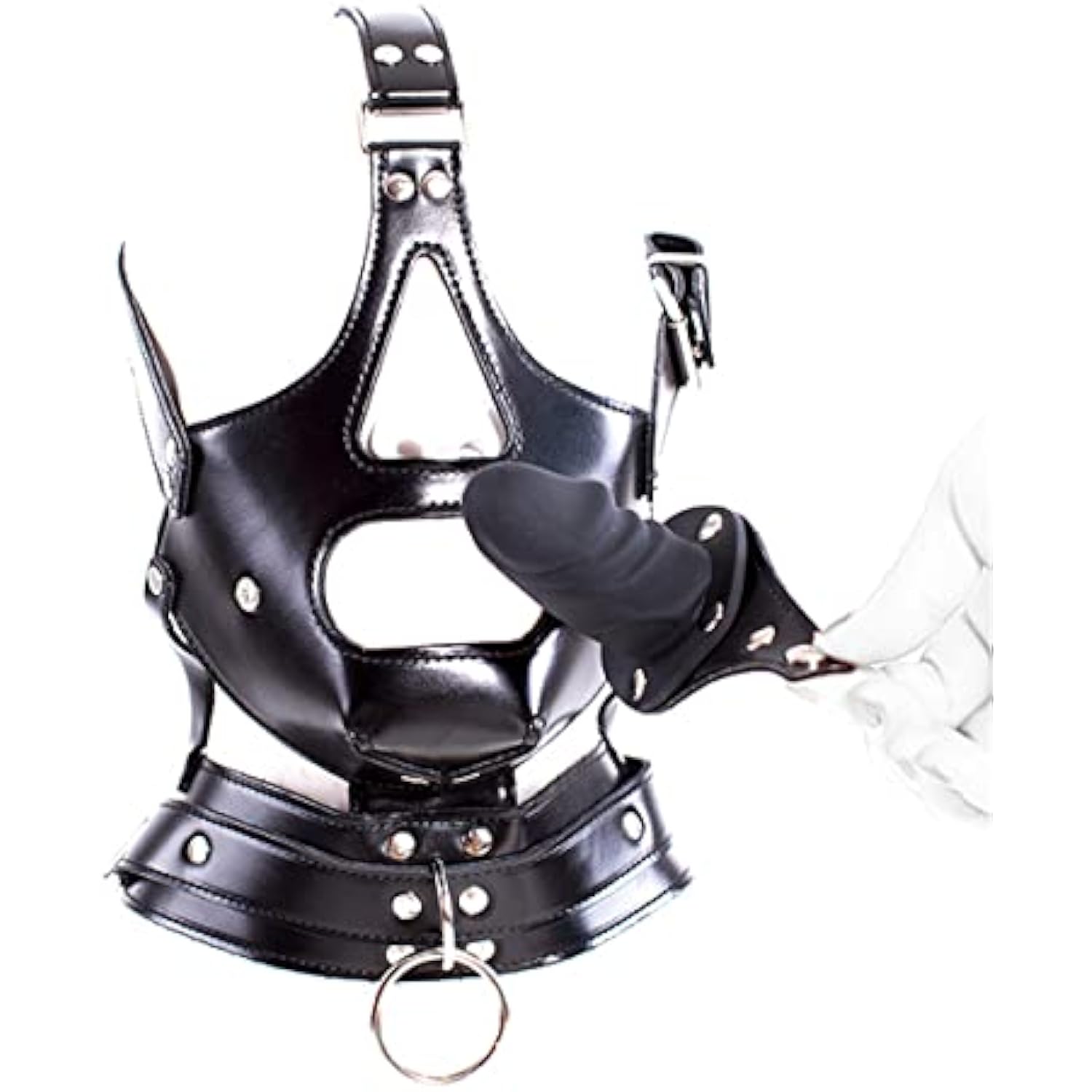 Sm Leather Bondage Head Harness With Detachable Dildo Restraint Mouth Gag Masks Adult Sex Fetish Toys