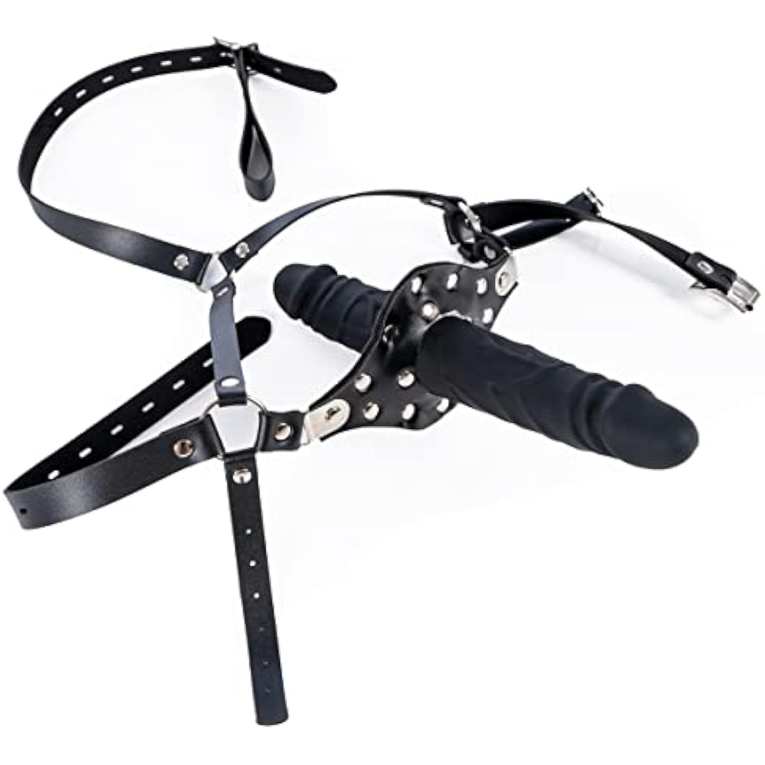 Sm Y-Shape Leather Bondage Head Harness With Dildo Restraint Mouth Gag Masks Adult Sex Fetish Toys