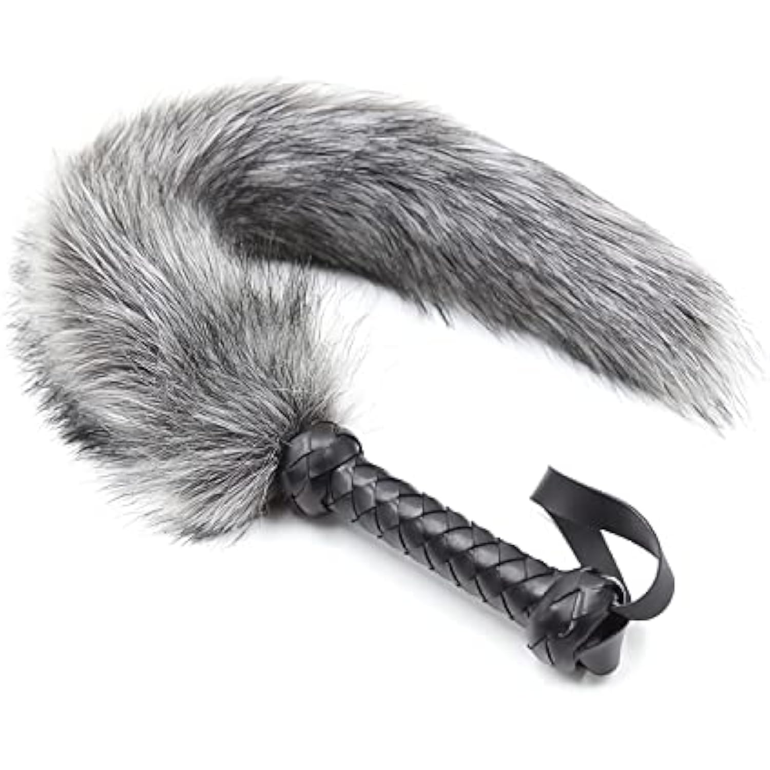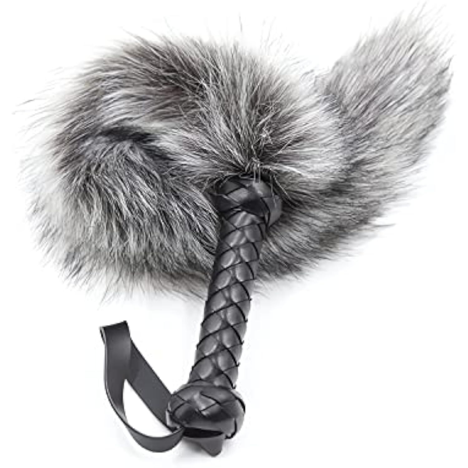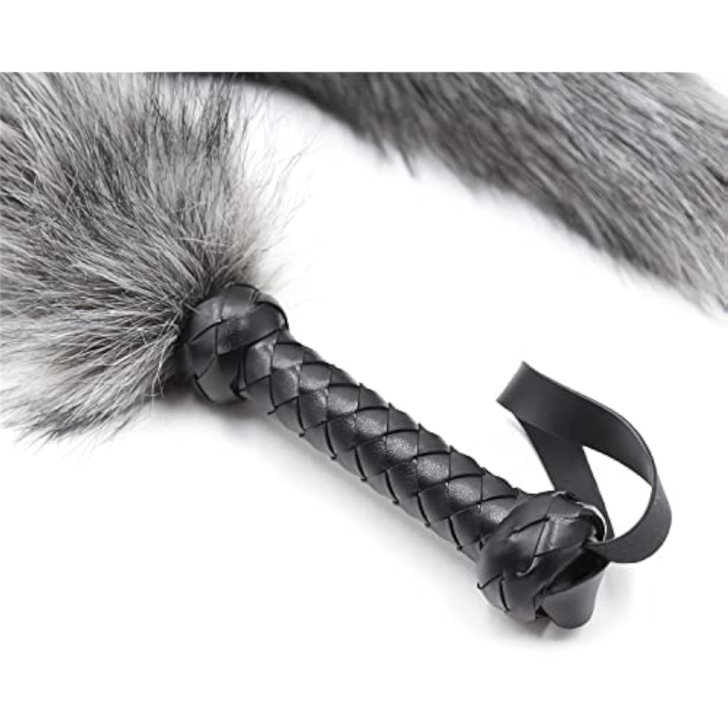 Soft Fur Whips With Pu Leather Handle And Fluffy Feather Tail, Flogger Crop For Unisex Grey