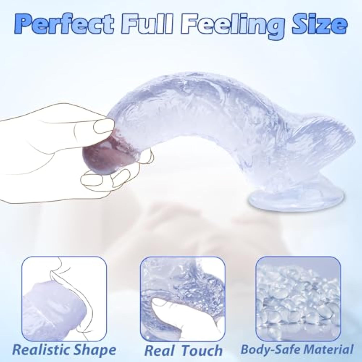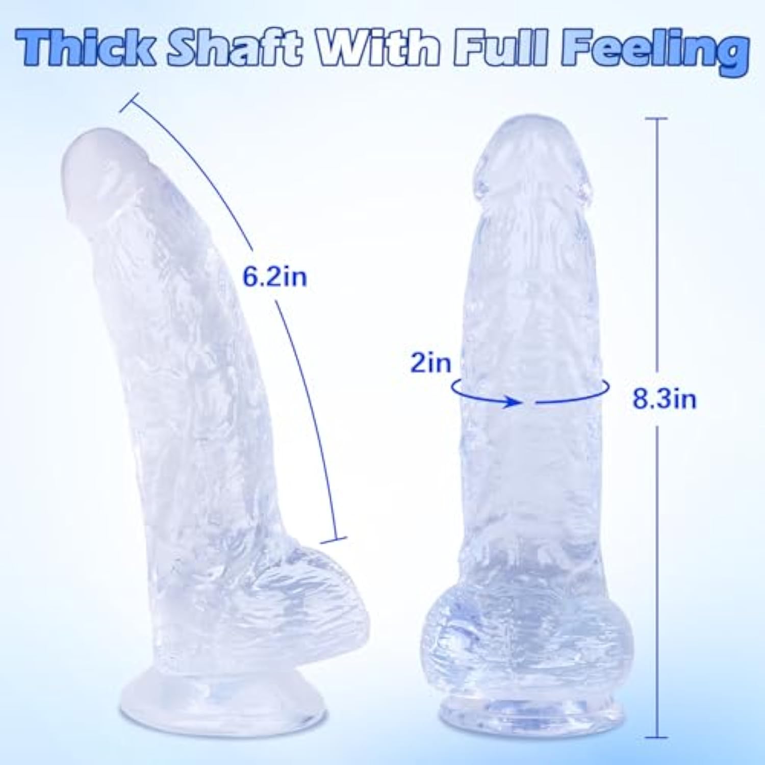 Soft Thick Realistic Dildo,Clear Big Dildo,8.3'' Ultra Soft Lifelike Silicone Huge Dildo With Strong Suction Cup,Men Penis G Spot Stimulator Adult Anal Sex Toys For Women Or Beginner Sexual