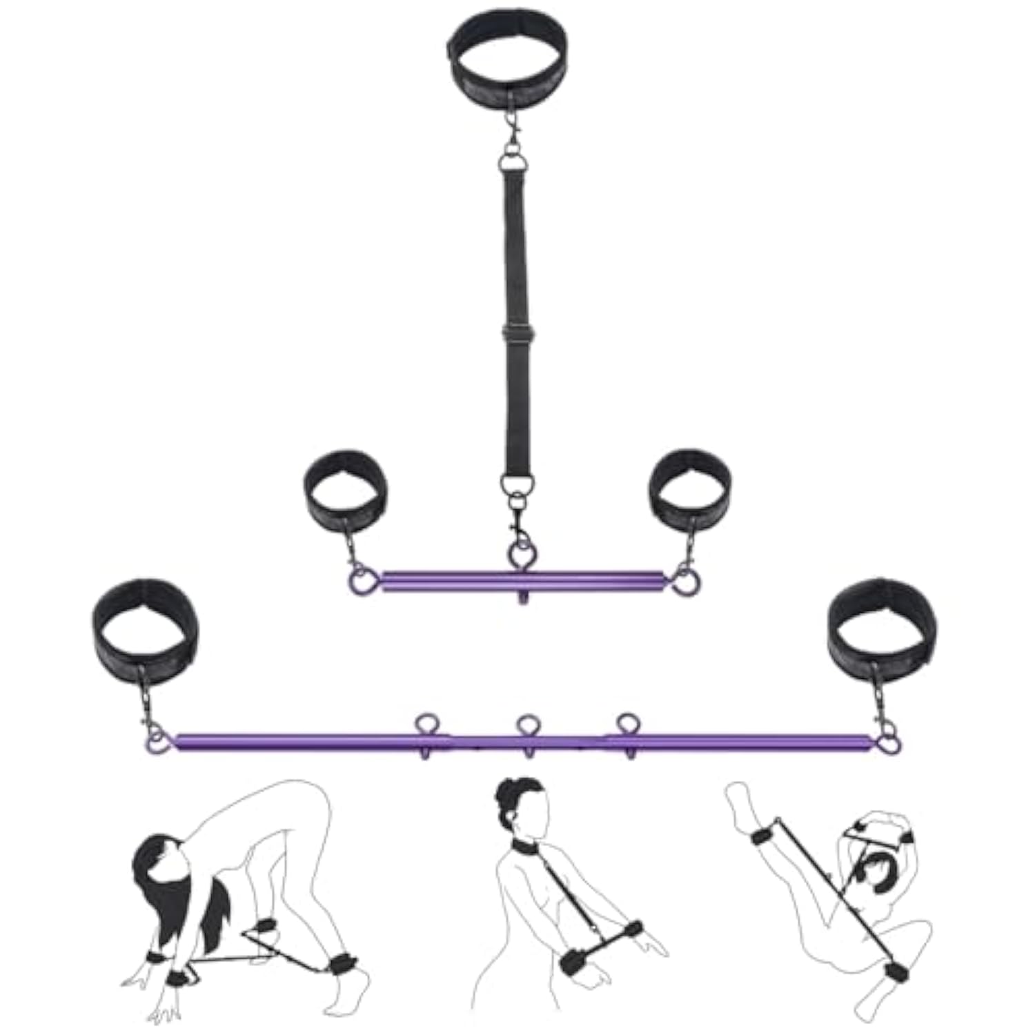 Spreader Bar Bdsm Bondage Restraints Kits With Wrist Ankle Neck Collar Adjustable Handcuffs Sex Toys Sm Games For Men Women And Couples (Purple)