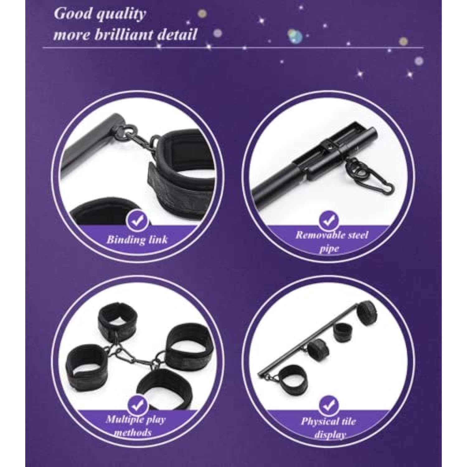 - Experience More Sex Positions:Use Spreader Bar In Different Ways To Constrain And Secure Her Ankles And Wrists, So That She Can Unfold, Lie On Her Back, Lie Down Or Lift Her Legs While Standing, More Postures And More Fun