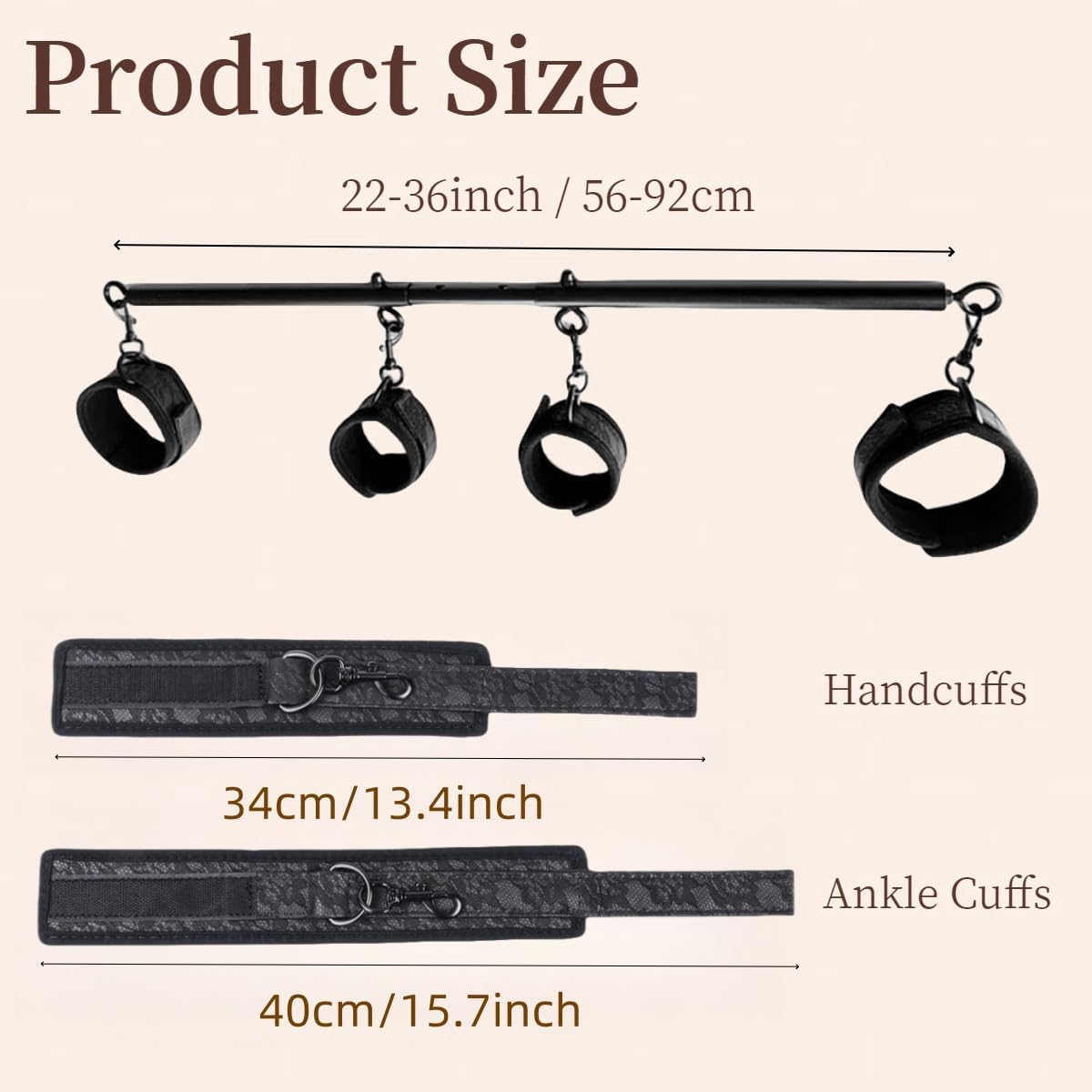 Adjustable Spreader Bar with Handcuffs & Ankle Cuffs – BDSM Restraints for Couples