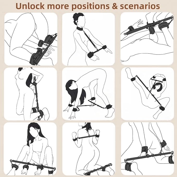 Adjustable Spreader Bar Bondage Set with Wrist, Ankle & Neck Restraints for Couples