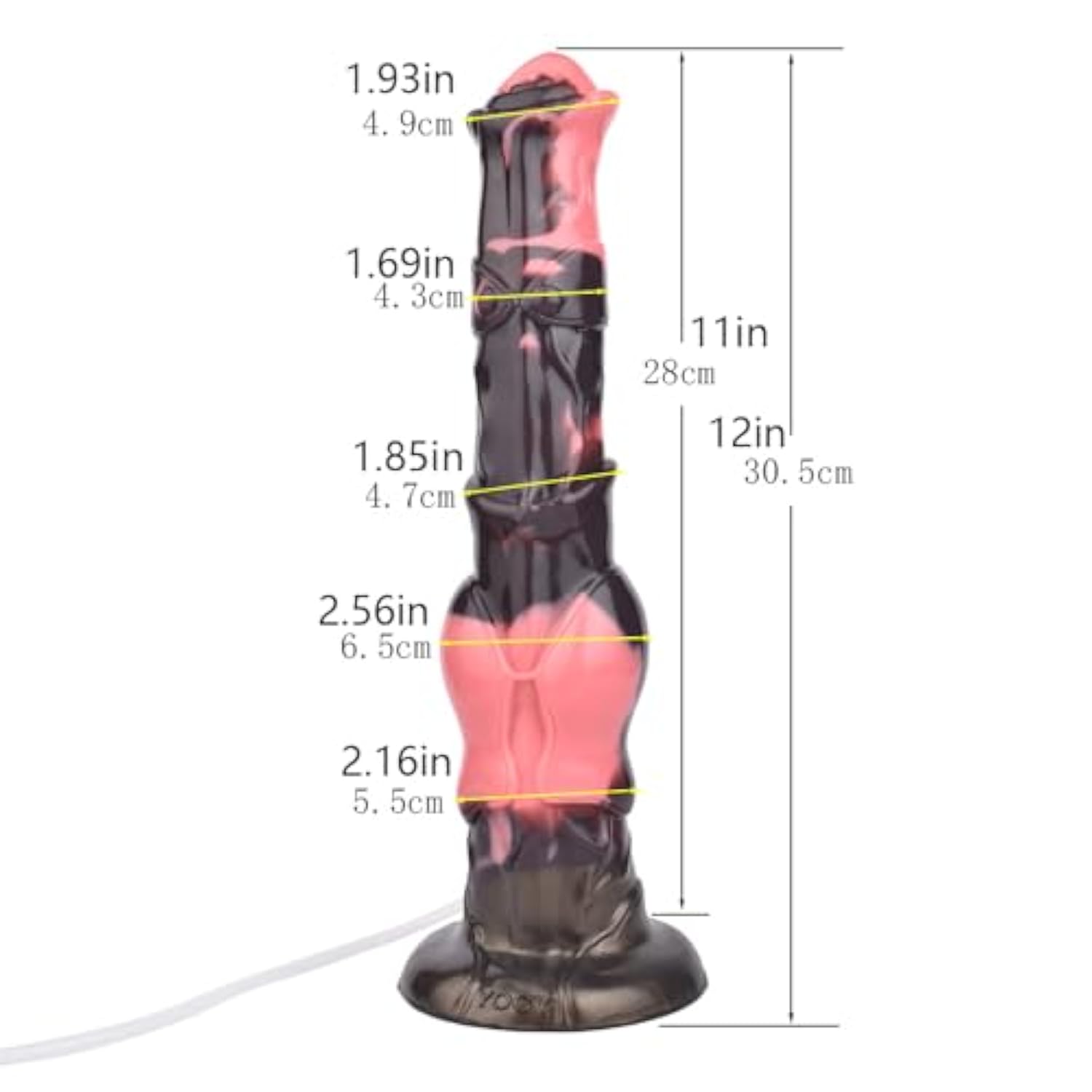 | Horse Dildo Size: Total Length: 12In/30.5Cm, Tip Diameter: 1.93In/4.9Cm. Middle Diameter: 1.85In/4.7Cm. Biggest Knotted Diameter: 2.56Inch/6.5Cm. | | Large Squirting Dildo Is Made Of Premium Silicone, Soft Flexible, Threaded Texture. | | Squirting Dildo With 100Ml Tube And 30Ml Bulb. | | Strong Suction Cup Dildo For Hands-Free Play. | | All Adult Sex Toys Are Discreet . | |