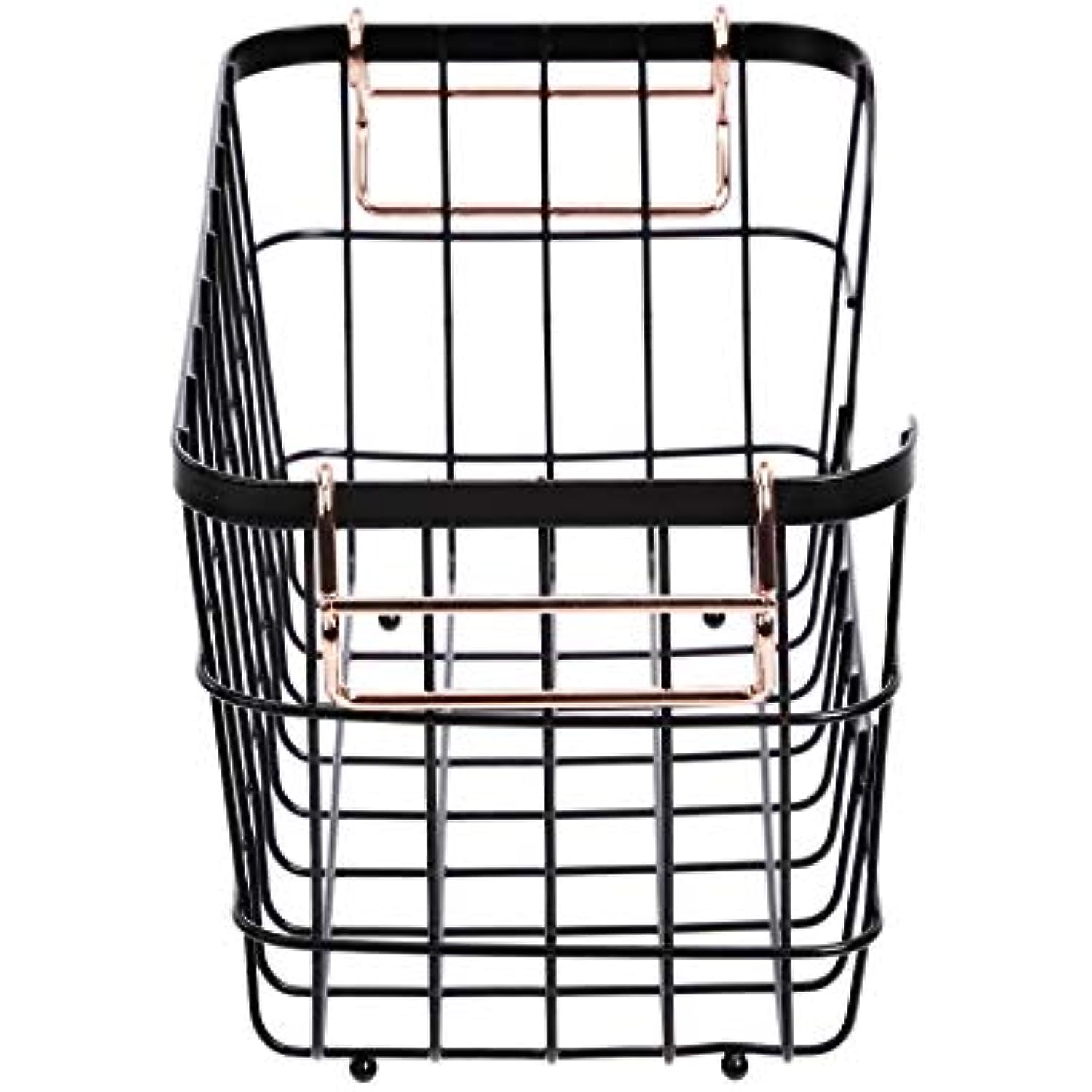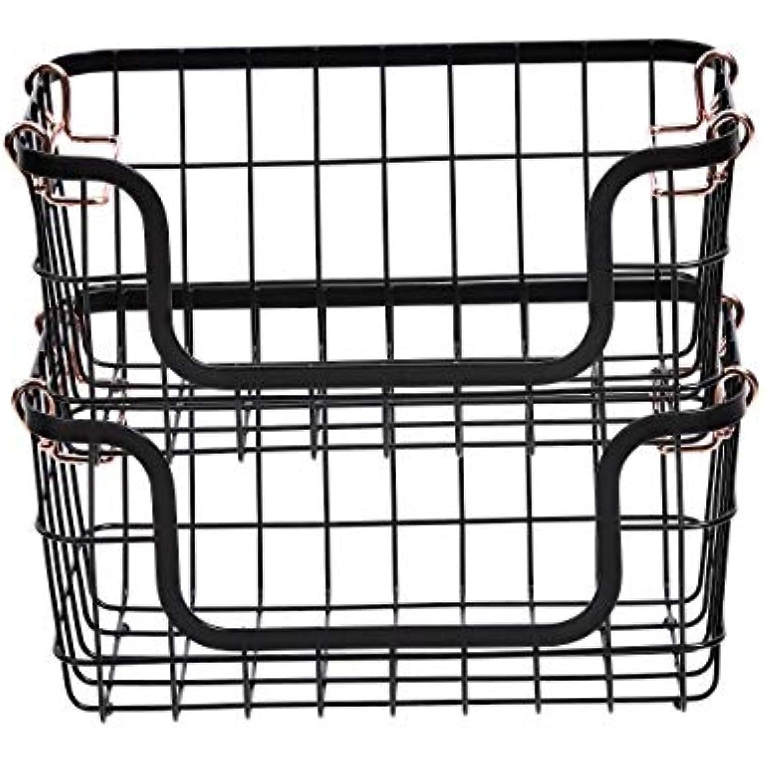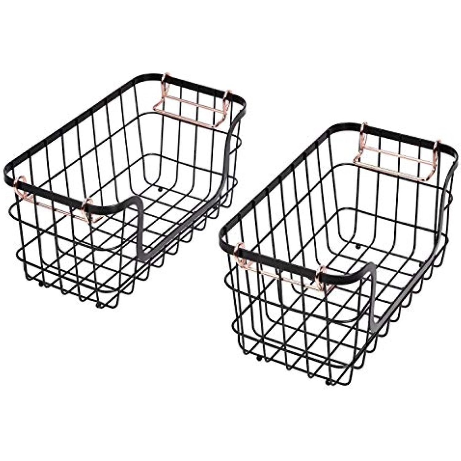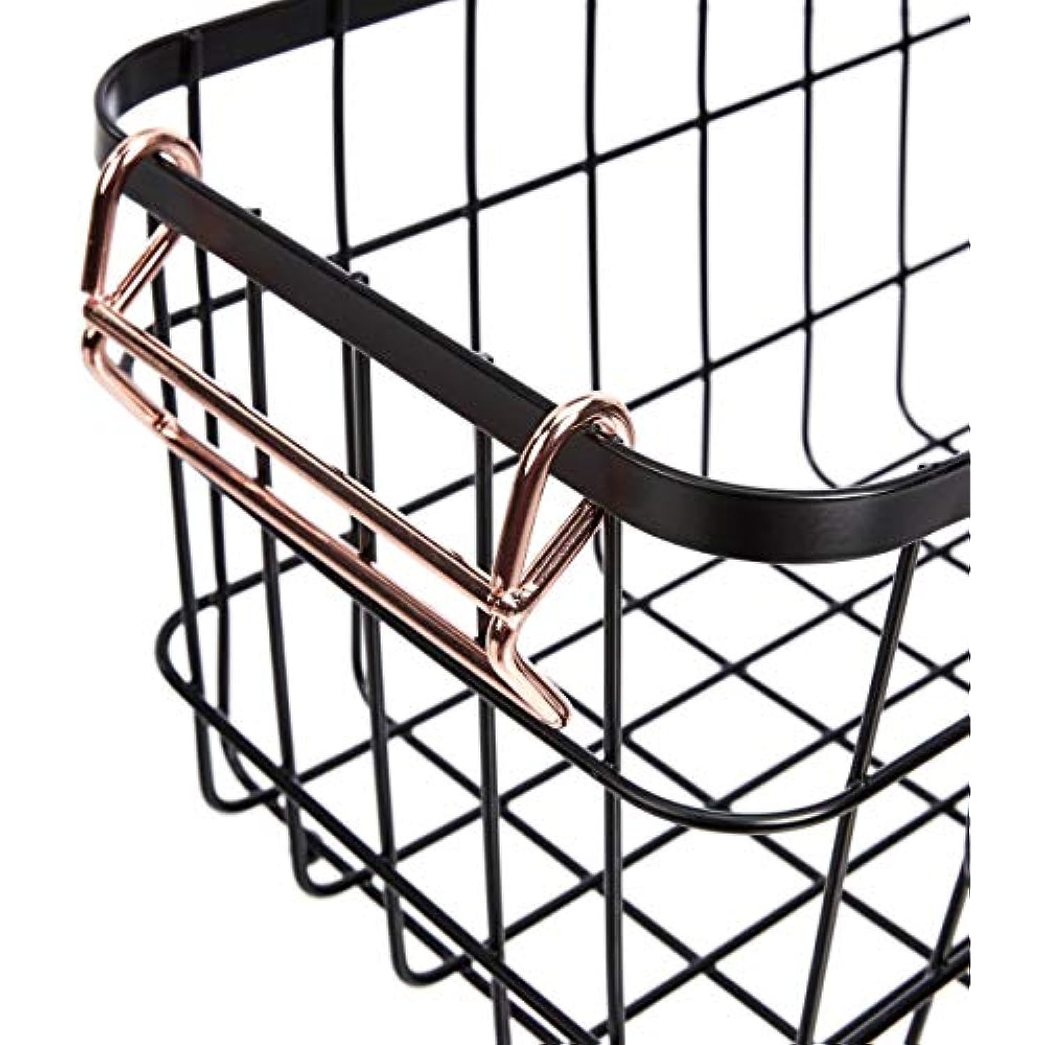 - Set of 2 black wire storage baskets with rose gold handles for home organization