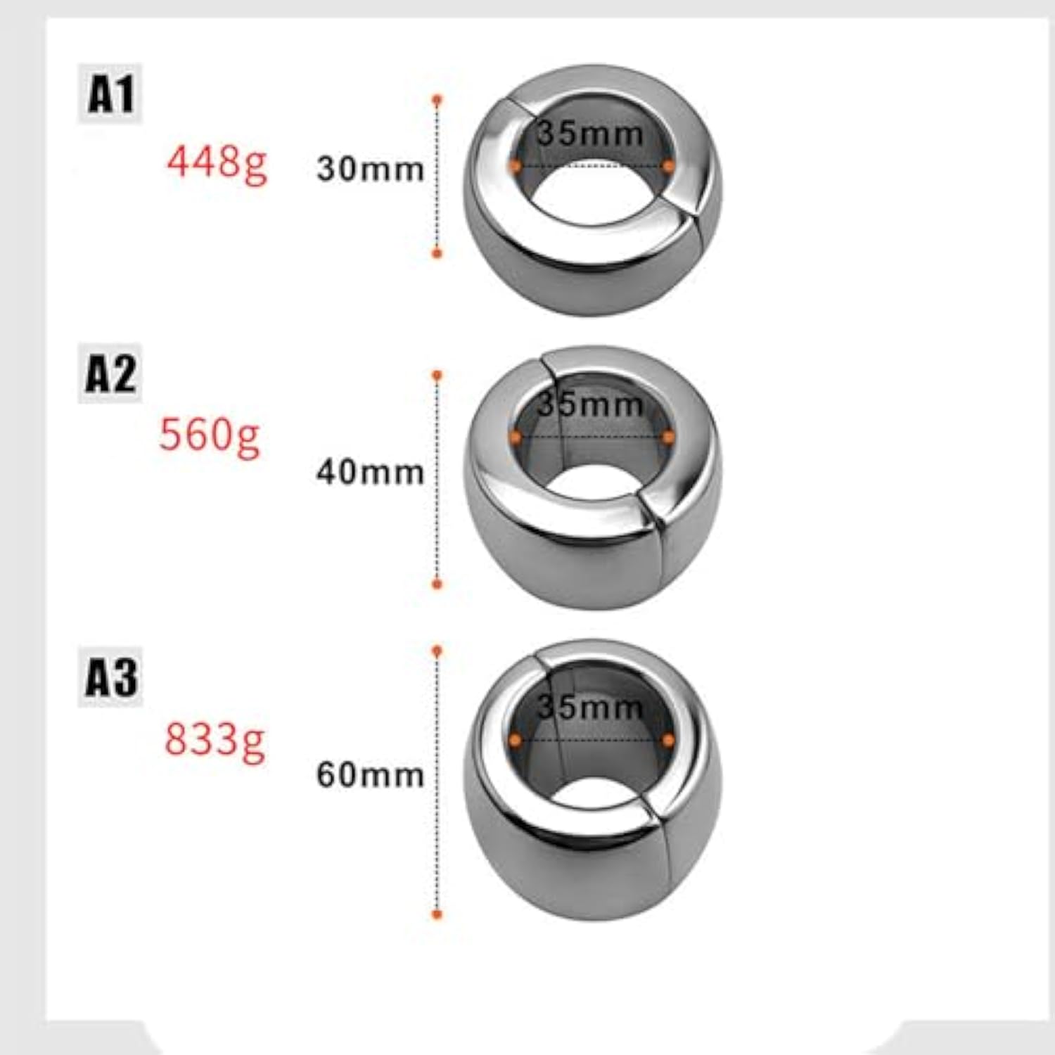 Stainless Steel Ball Stretcher Scrotum Metal Penis Lock Cock Ring Male Delay Ejaculation Erection Cock Ring Slave Sex Toy Man (Magnetic 30Mm)