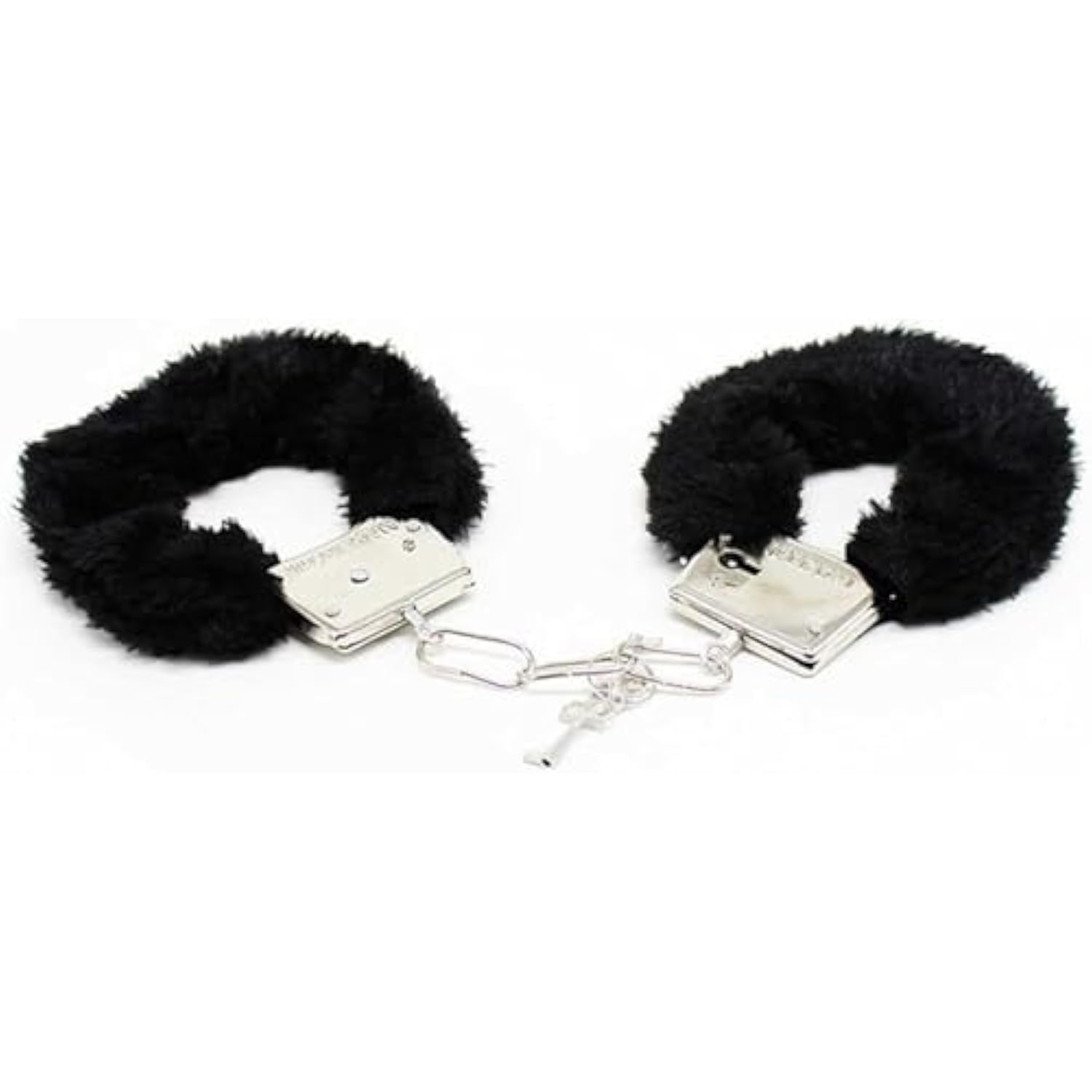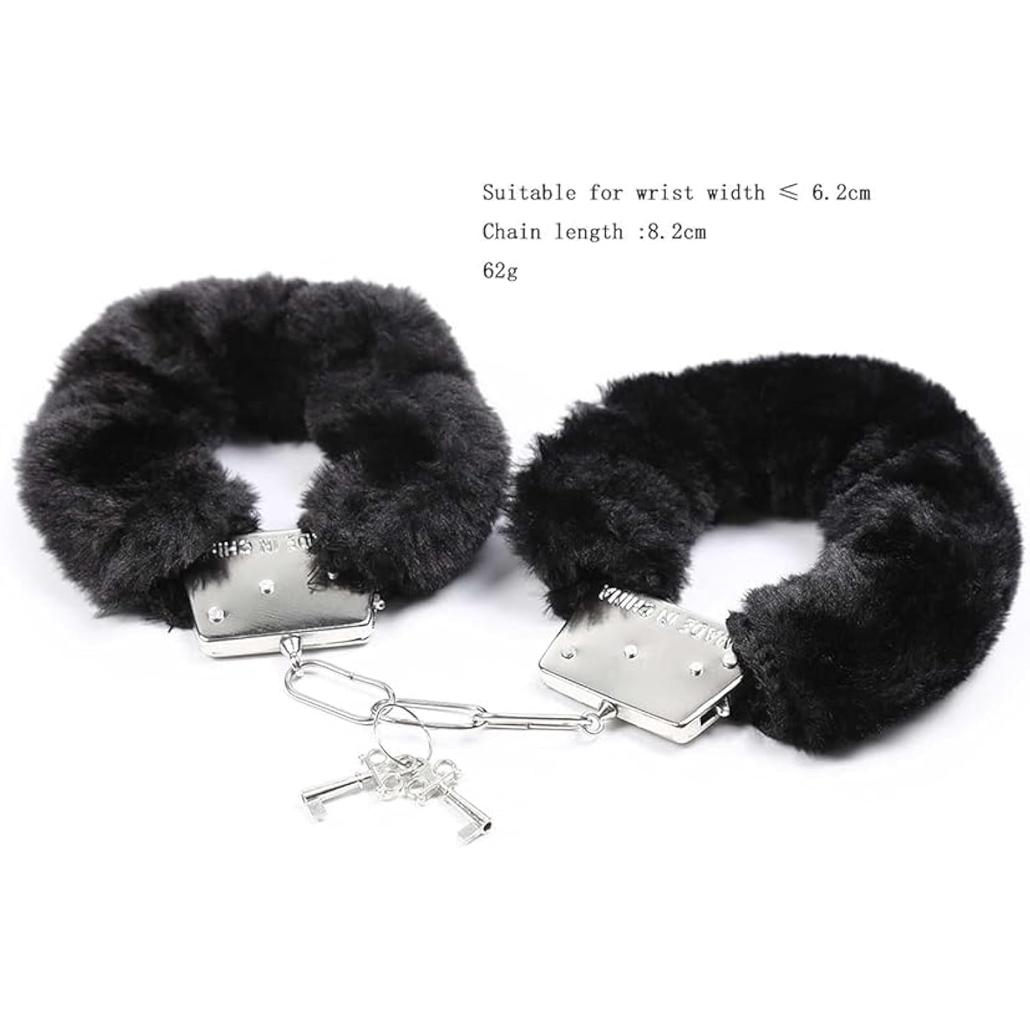 Stainless Steel Black Fluffy Handcuffs for Ankles and Wrist with Chain Set Fuzzy Sweater Hand Cuff Set for Adults Bedroom Hand Cuffs for Women Couples Rt-51