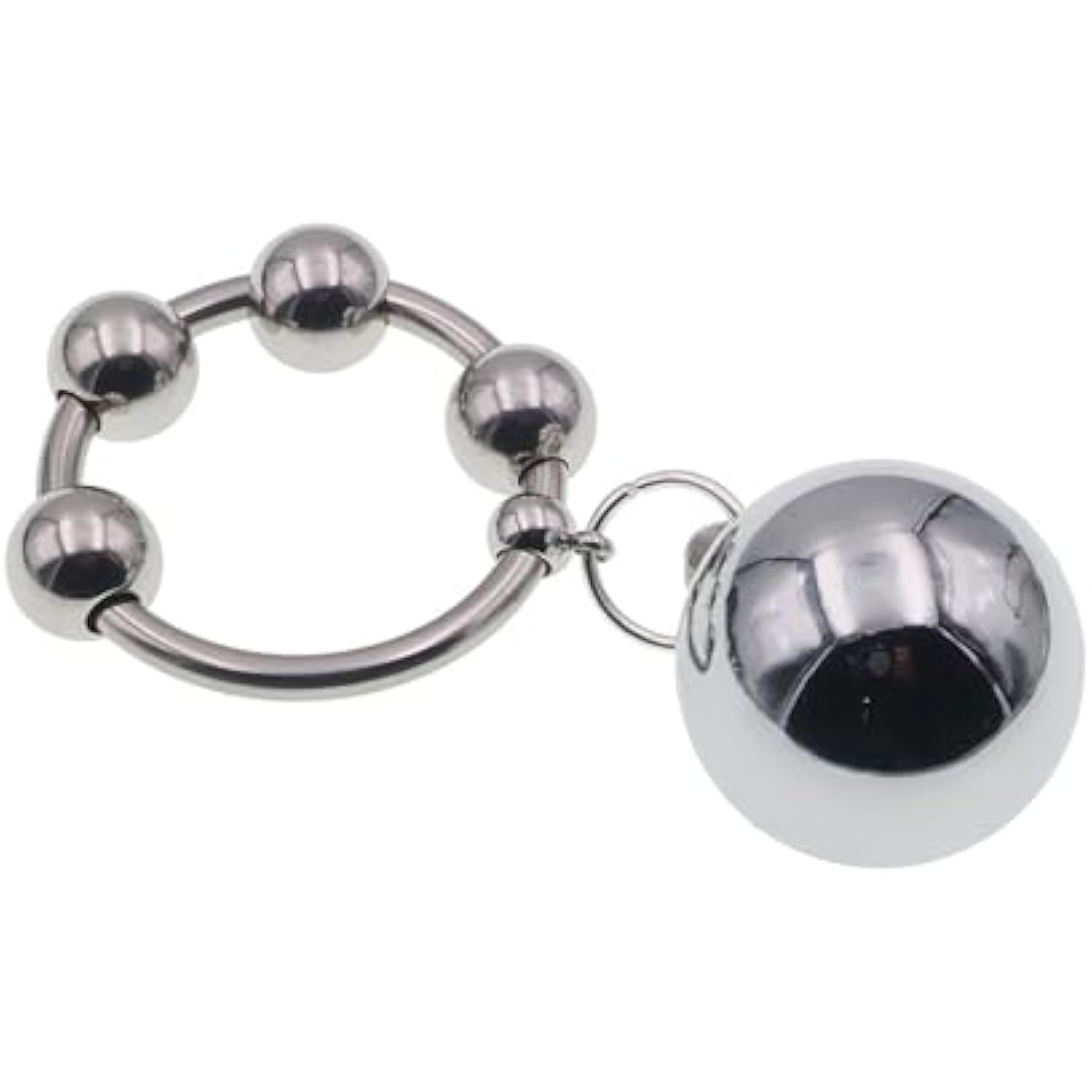 Stainless Steel Metal Weighted Pendant Penis Ring With 4 Beads, Metal Heavy Ball Male Cock Ring Bondage Penis Ring