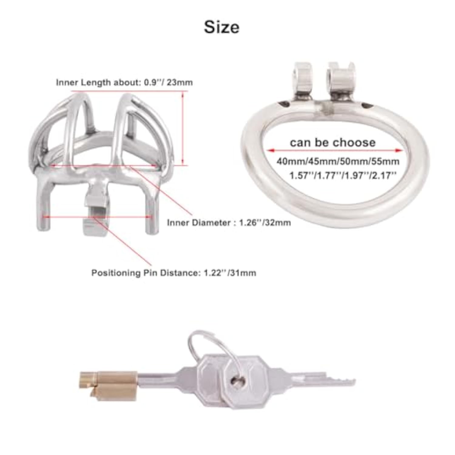 | Ergonomic Design, Easy To Wear Curved Ring , More Comfortable Than Common Chastity Device. | | Real Stainless Steel, Not Plating And Hypoallergenic, Manual Mirror Polished, More Sleek, More Comfortable. | | The Package Only Includes A Set Of Cock Cage: 1 Separate Cage + 1 Base Ring + 1 Brass Lock + 2 Keys. | | Chastity Cage Has 4 Different Sizes Of Rings To Meet Your Size, Fit For Most People. | | Protect Privacy: Opaque Package, Product Information Won'T Be Shown In The Package Or Customs Declaration. | |