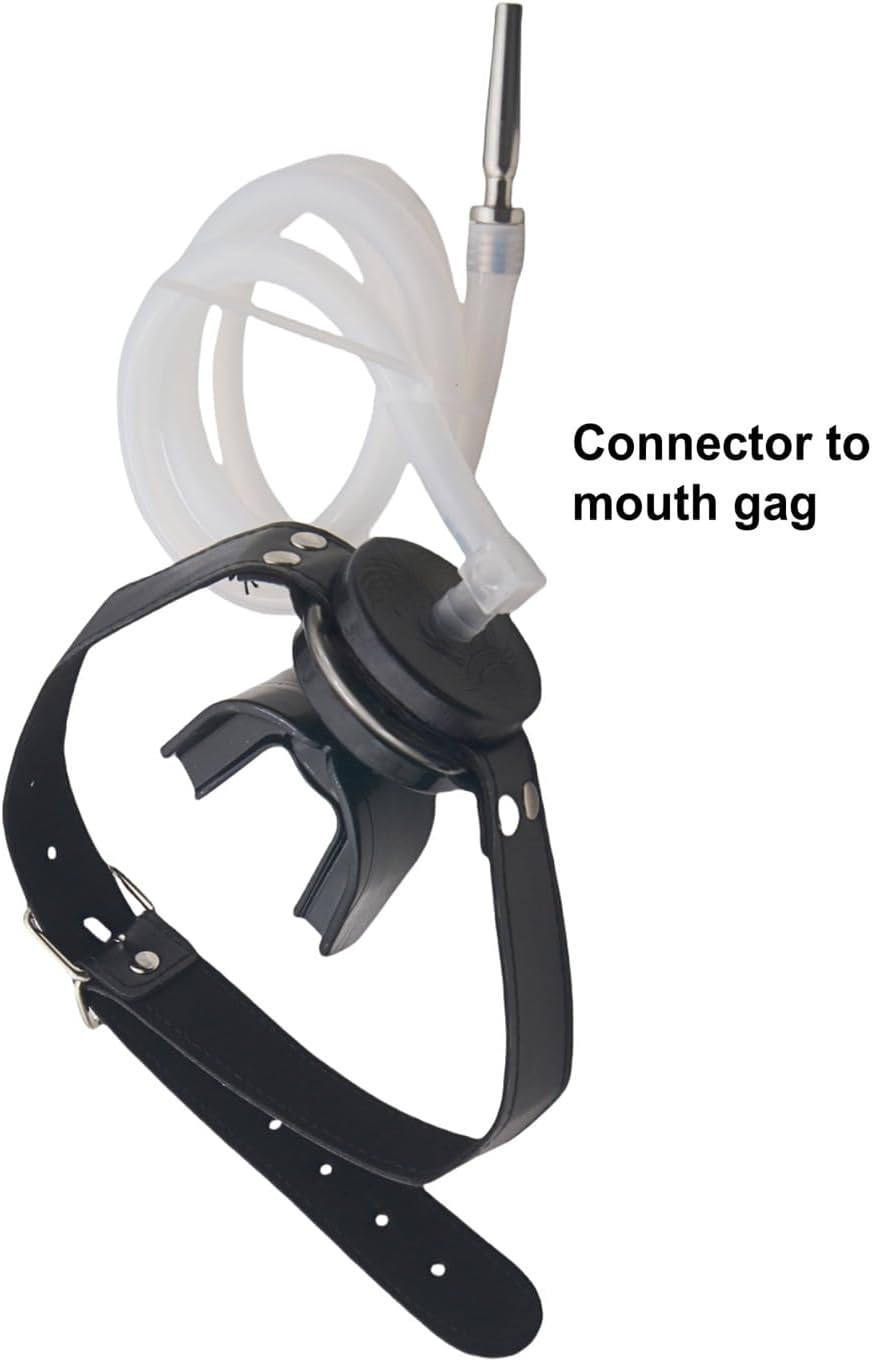 This dual-function system includes a U-shaped mouthpiece with a hollow, detachable insert connected by a 38.5-inch flexible tube. Designed for adult role-play scenarios, it enables fluid transfer between partners for immersive experiences. Suitable for both beginners and experienced users in consensual play.