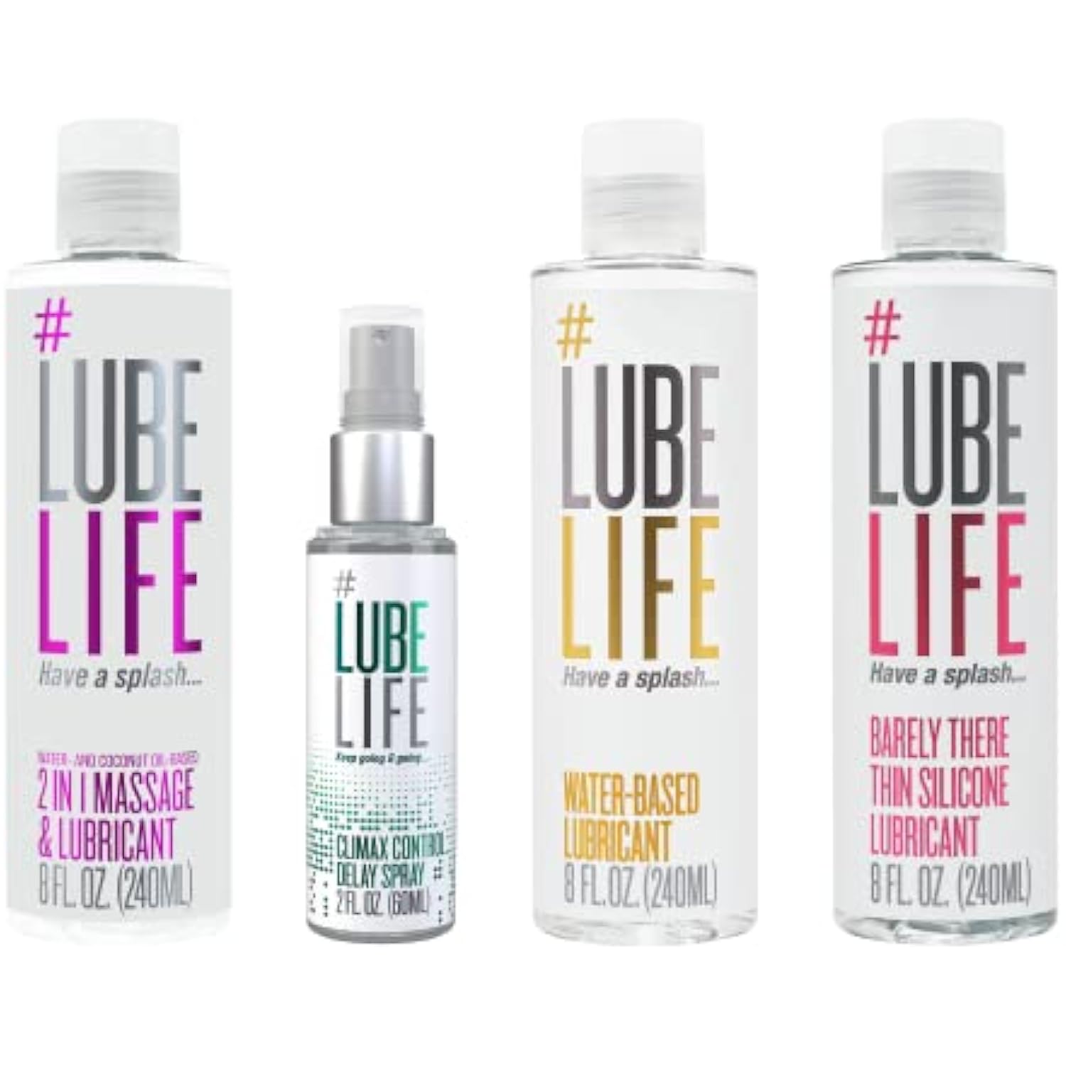 Staycation Combination, 2-In-1 Massage & Lubricant 8 Fl Oz, Climax Control Delay Spray 2 Fl Oz, Water-Based Lubricant 8 Fl Oz, Barely There Thin Silicone Lubricant 8 Fl Oz, For Men, Women, A