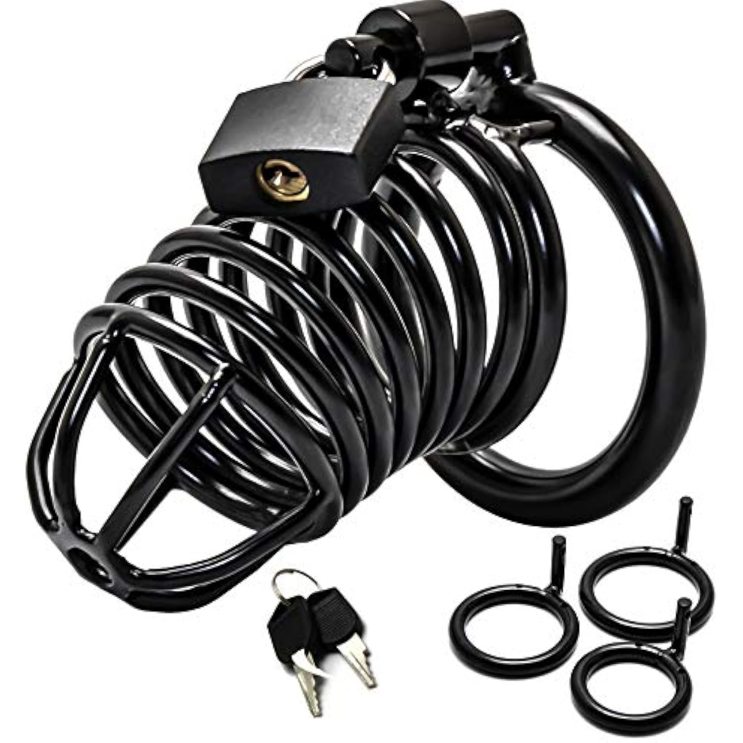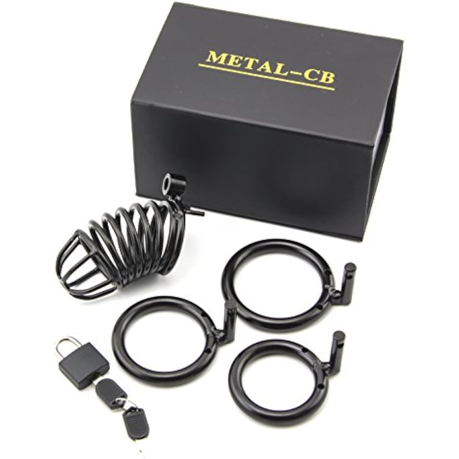 Steel Metal Male Cock Cage Male Chastity Device Locked Cage Sex Toy For Men (3 Rings) (Black)