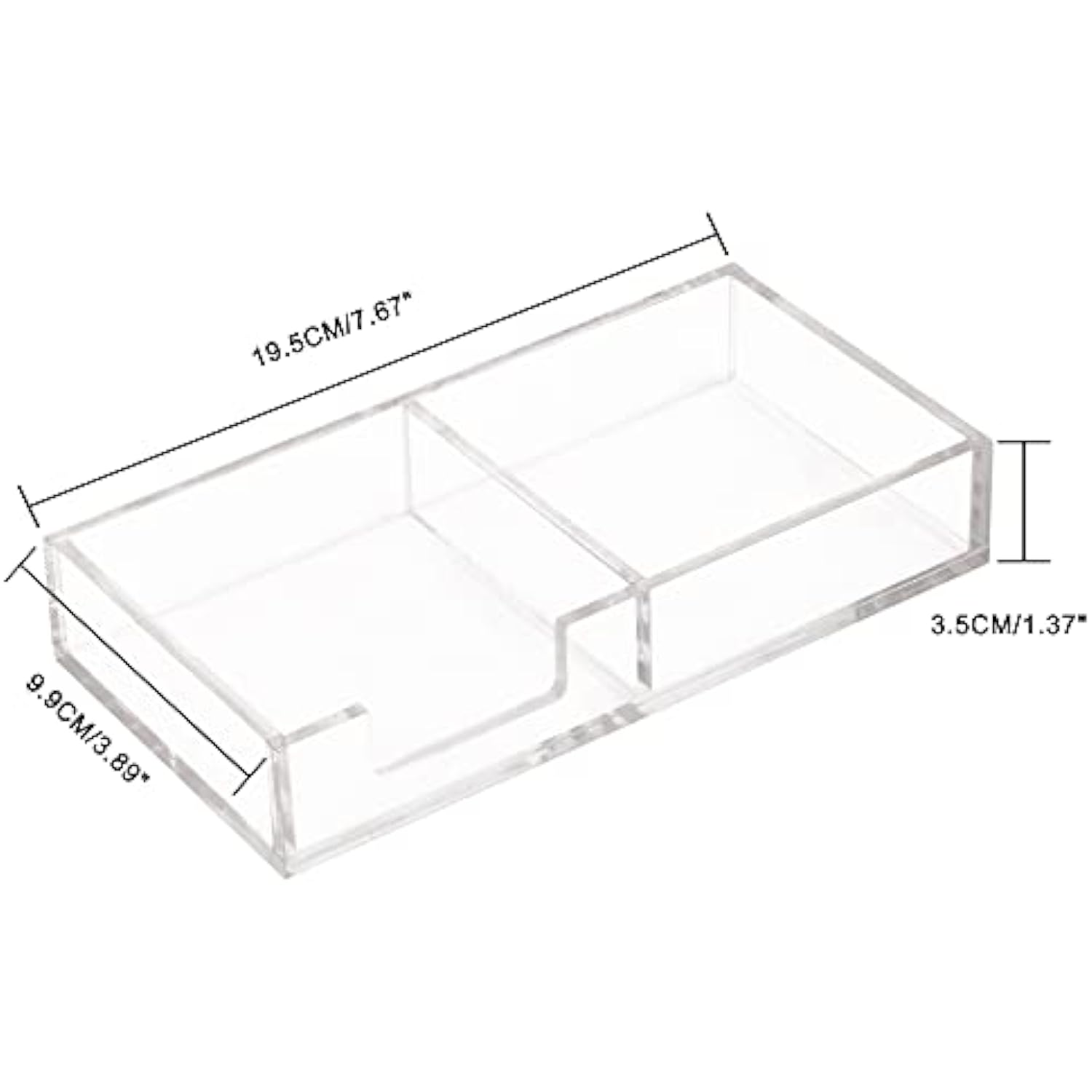 - MULTI-APPLICATION: High clarity acrylic, well-polished edge, modern and simple design of this note dispenser match various styles of office decoration. Designed for office supplies storage on office desk as stationary organizer at office or school, convenient for holding note pads and clips, hair ties, lipsticks or kitchen tools etc.