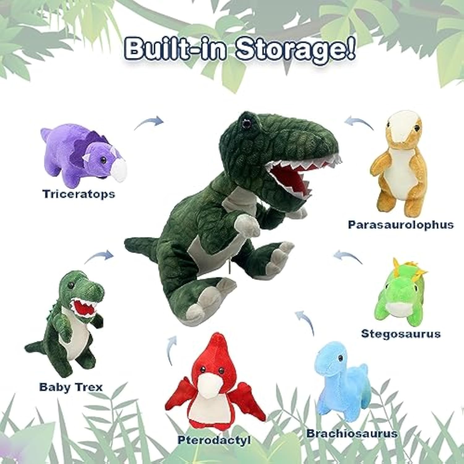 Store Handcrafted Plush Big Green T-Rex Stuffed Dinosaur With 6 Baby Dinosaurs Inside For Kids And Dinosaur Lovers - 19.6 Inches
