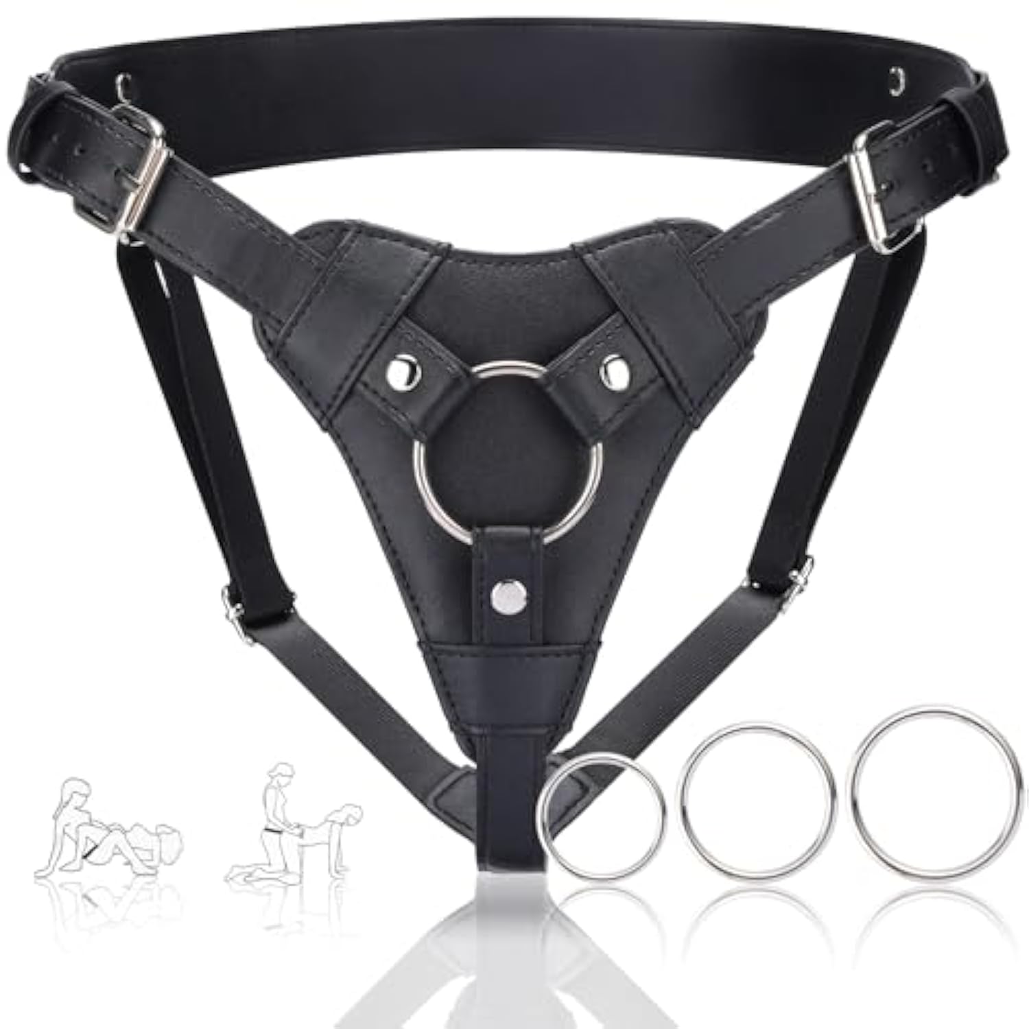 Strap On Dildo Harness,Adult Sex Toys For Women Men,Lesbian Gay Couple Vaginal Anal Play, Suitable For Beginners,Adjustable Strap On With 3 Metal Rings Can Be Pegging To Most Dildos