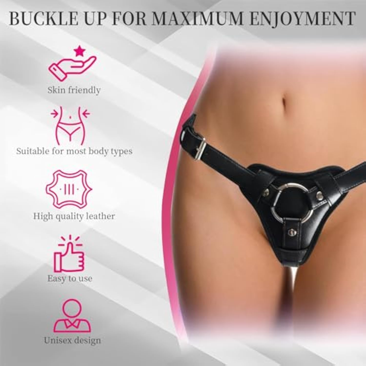 - Strap On Sex Toy Is Made Of A Gorgeous Thick Garment Leather And Nylon That Provides Excellent Durability And Unbelievable Comfort. The Metal Rings And Rivets Ensure Even The Most Nickel-Allergic User Won'T Suffer Any Discomfort. The Plushy Soft Backing Keeps The Dildo From Chafing Against Your Skin And Bruising Your Pubic Bone. The Harness Works With Most Flared-Base And Balls-Based Dildos