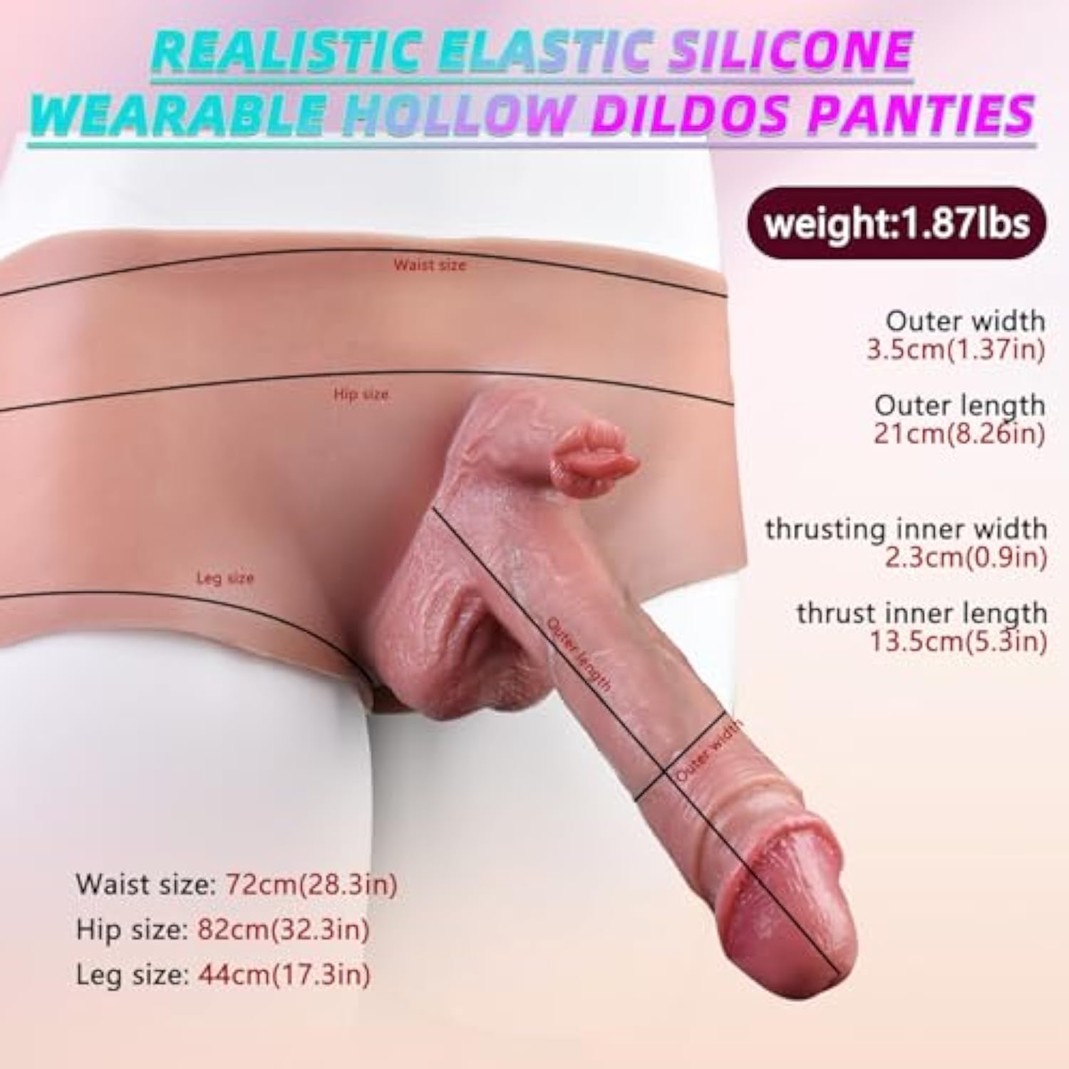 | Realistic Strapon Dildo: This 8.67 Inch G Spot Dildo Is Shaped To Replicate A Real Penis, With A Large Glans And A Thick, Long Penis For A Realistic Feel. The Soft Fake Tongue And Life Like Dildo Provide Dual Stimulation From The Inside Out | | Strapless Strap-On Dildo: Unlike Traditional Strap On Dick And Penis Sleeve, These Silicone Dildo Panties Are Simpler And More Convenient To Use, As There Is No Need To Adjust The Size Of The Strap On Kit Once It Has Been Put On. The Dildo Panties Fit Snugly Against The Skin For A More Comfortable Fit | | Large Penis Sleeve: The 8.26 Inch Hollow Strap On Allows Partners To Participate Even Without An Erection For Shared Enjoyment. You Can Also Insert The Vibrator Into The Cock Sleeve To Unlock More Ways To Play | | Fantasy Strap On Dildo Harness: The Most Striking Feature Of This Lifelike Dildo Is The Fake Tongue Above The Penis. During Use, The Fake Tongue Can Stimulate Sensitive Areas Such As The Clitoris, Vulva, And Anus, Enriching Foreplay And Igniting Passion | | Silicone Realistic Dildo: Crafted From Premium Realistic Silicone Dildo Material, This Hollow Strap On Delivers A Natural Feel. Perfect For Strap On For Women, Pegging Dildo, And Gay Sex Toys Adventures | |
