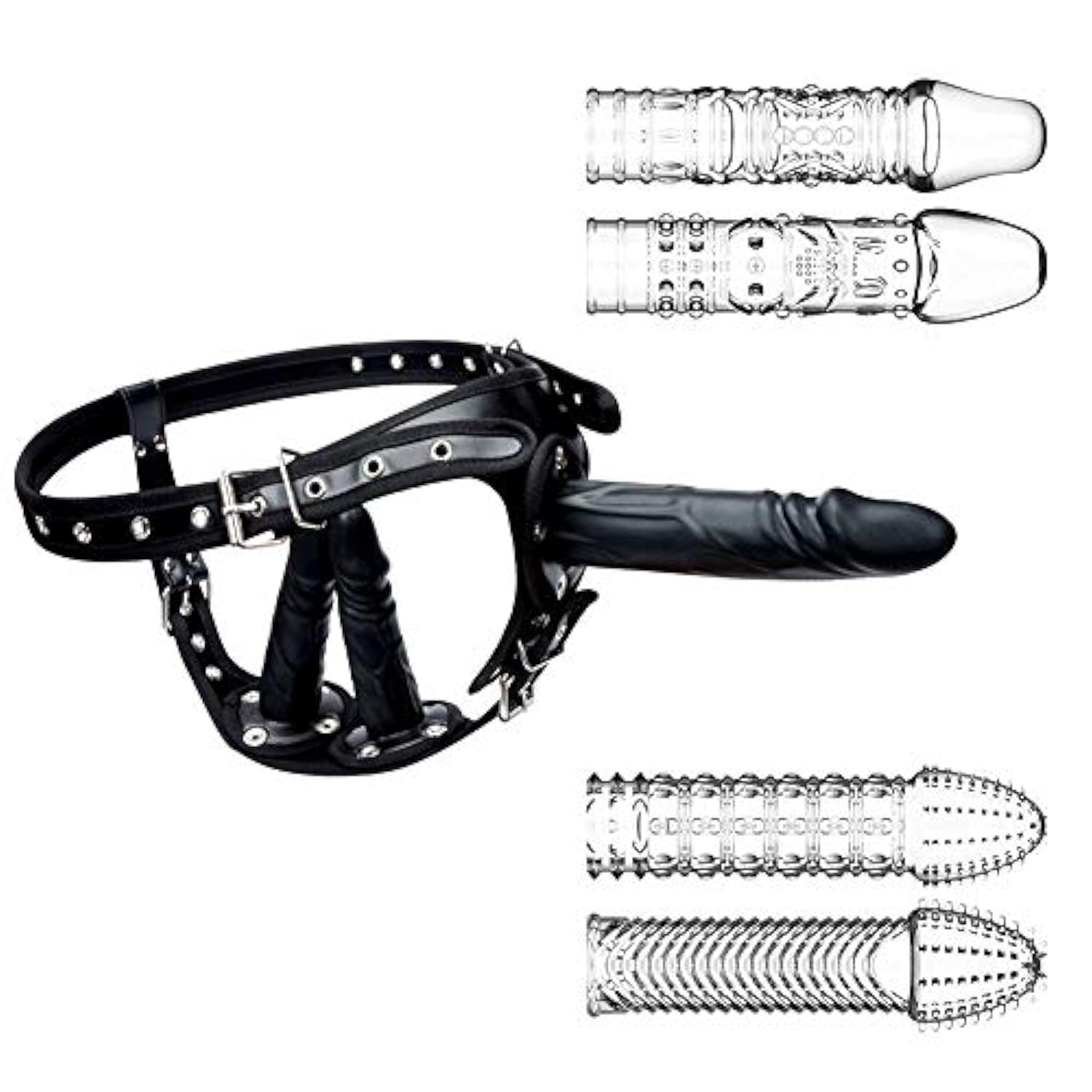 Strap-On Dildos With Harness Belt And 4 Reusable Penis Sleeves Cock Condoms For Intense Stimulation