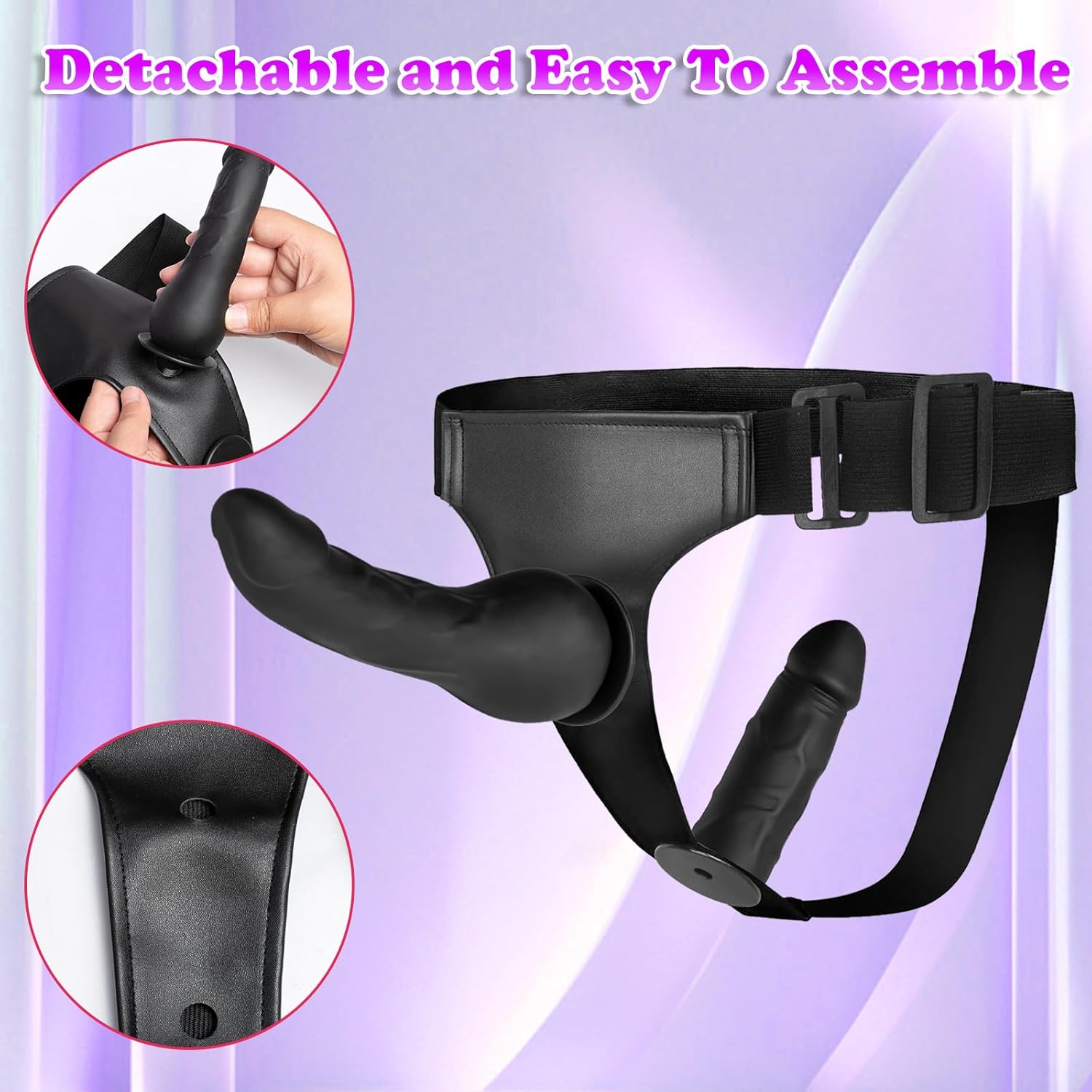 - Strap On Dildo with Detachable Anal Dildo - Experience unparalleled pleasure and continuous stimulation with our strap-on double dildo, featuring a unique detachable design. This innovative toy comes with two detachable dildos of different sizes, allowing you to use each one individually. For maximum enjoyment, attach the larger dildo in the front to satisfy your partner, while the smaller anal dildo stimulates your vagina or anus from behind.