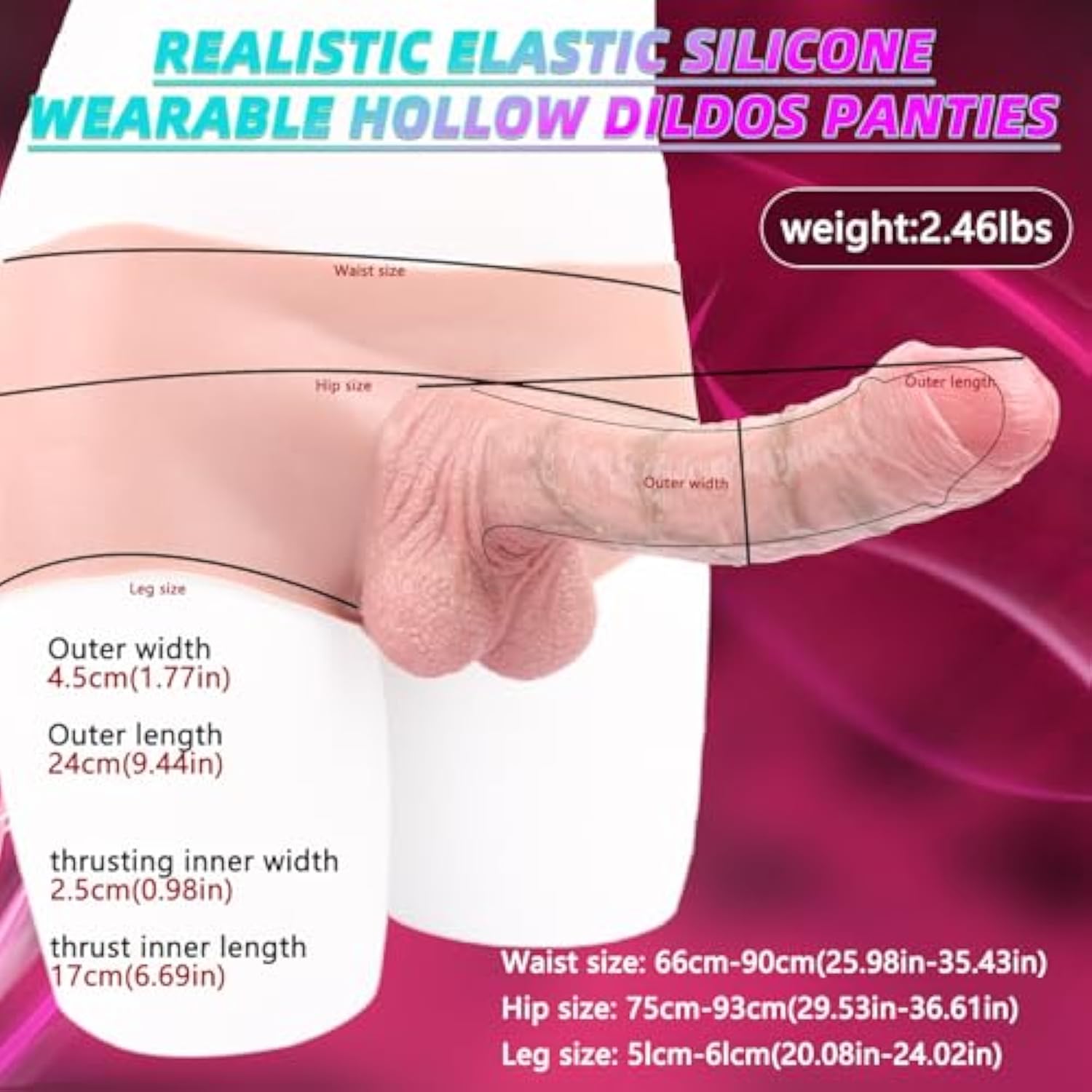 Strap-On Harness, Male Extender Sleeve, Soft Silicone Wearable Dildo Panties, Realistic Penis Sleeve Cock Extender Enlarger, 9.44 Inch Hollow Dildo Sex Toys For Pegging Mens Women Couple