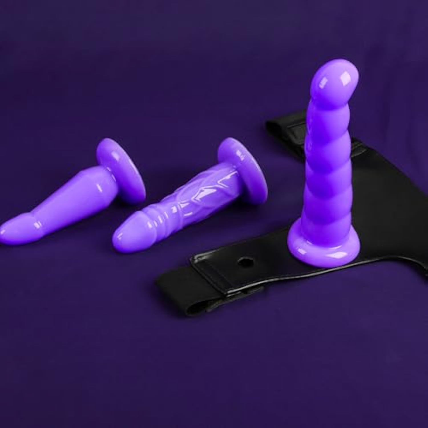 - ?3 Different Sized Rubber Connecting Rings - The Strap-On Dildo Has 3 Different Sized Attachment Rings For Suction Cup Dildos Of Different Sizes. Soft Front And Back Cushions, Comfortable Snap Button Design
