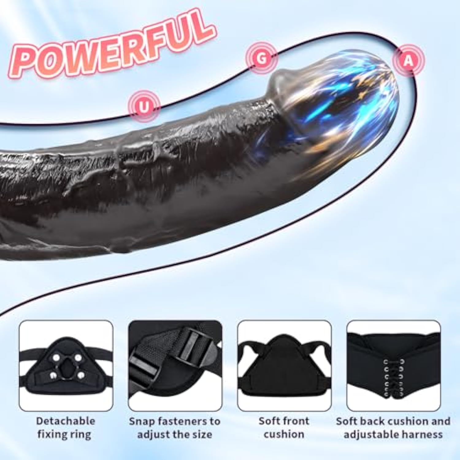 | ?Strap On Anal Dildo?: This Female Sex Toy Features A Removable Strap-On Design With Soft, Retractable Rubber Rings For A Secure Fit In Most Sizes. The Soft Front And Back Pads Also Enhance Comfort And Protection For Long Hours Of Use; Adjustable Shoulder Straps Provide Stability And Support During Use . The Shoulder Strap Is Adjustable Up To 60 Inches. You Can Fix It In Any Body Position You Want At Will. It Can Definitely Meet Different Preferences And Needs In Anal Sex Play. | | ?8 Vibration Wearable Dildos?: This Realistic Dildo Comes With 8 Vibration Modes. The Powerful Motor Takes You To Feel Multiple Stimulation From Mild To Wild. The Simulated Head Design Can Easily Slide Into The Secret Garden; It Can Also Stimulate The Clitoris, G-Spot, Breasts, Anus And Other Sensitive Parts, Suitable For Lesbian Use Or Couples Foreplay Mini-Games. | | ?Soft Material And Realistic Texture?: This Adult Sex Toy Is Made Of Very Soft Silicone, Which Fits Vaginally And Gives A Real Sense Of Touch At The Same Time; Simulated Glans, Realistic Texture, Thick Penis Shaft And Lifelike Full Balls, Visual And Tactile Double Experience. The Soft And Comfortable Front And Back Cushions Are Connected By Adjustable Straps And Can Be Adjusted To Any Size You Want, To Fulfill Any Sexual Fantasies, And A Variety Of Sexual Experiences. | | ?Remote Control Design For Women'S Pleasure?: This Strap-On Dildo Comes With A 20-Foot Wireless Remote Control, Which Allows You To Activate And Control The Product With One Button While It Is In Standby Mode. Enjoy Sex From A Distance. The Suction Cup Dildo Is Also Great For Solo, The Bottom Suction Cup Design Can Be Attached To Any Smooth Surface Such As Bathroom Glass, Table, Etc., Freeing Up Your Hands For Hands-Free Fun. Take It With A Key To Open The Fun Of Wet Play. | | ?Magnetic Charging, Waterproof And Easy To Clean, Individually Packaged?: This Adult Toy Is Magneti