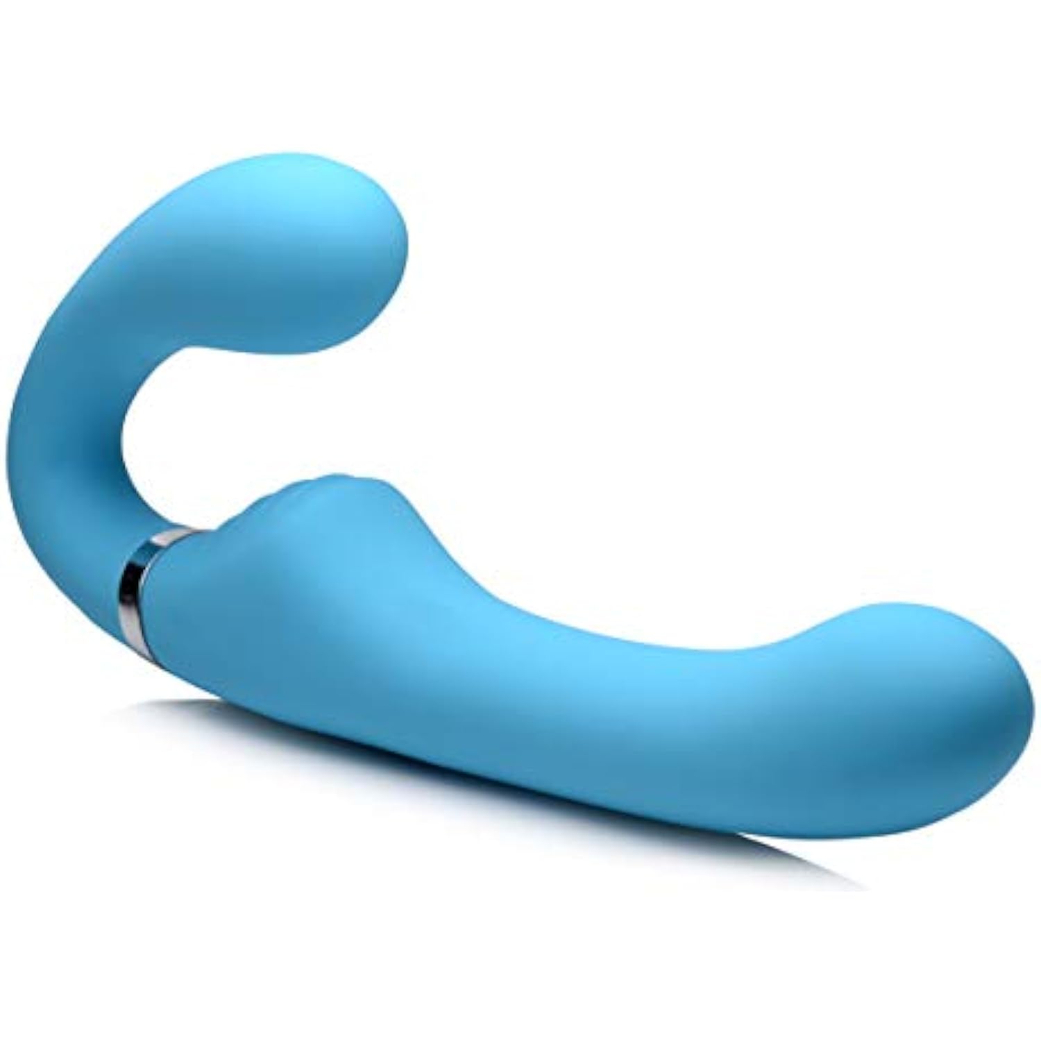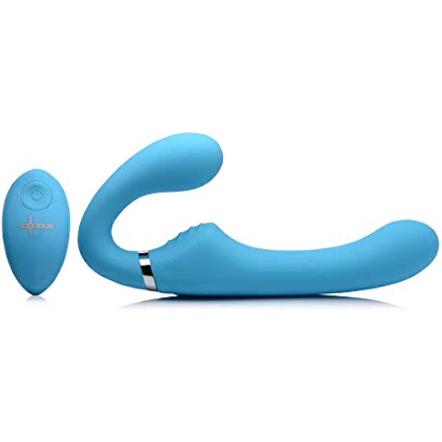 Strap-U Mighty Rider 10X Vibrating Silicone Strapless Strap-On - Blue