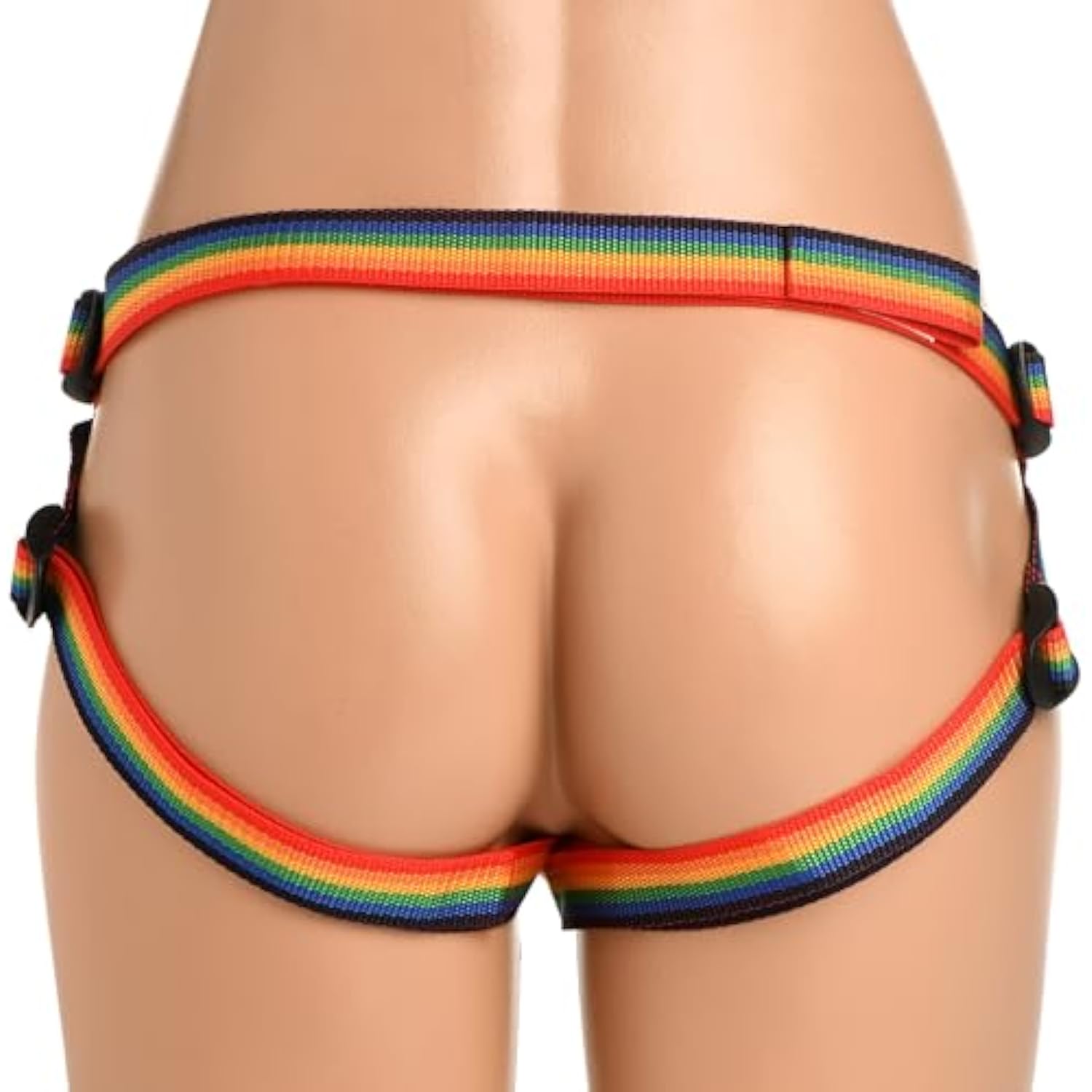 Strap-U Ride The Rainbow With Universal O-Ring That Fits Any Strap-On Dildo. Pegging Toys Sex Harness For Women. Machine Washable, Vegan Leather & Nylon, 56 Waist, Rainbow