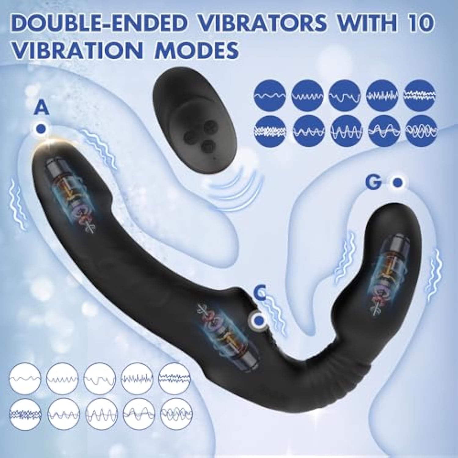 Strapless Strap-On Dildo Vibrator With Remote Control, Double-Ended Dildos With 10 Vibration Modes, Waterproof Rechargeable Sex Toys With Clitoris Stimulator For Women Lesbian Couples Black