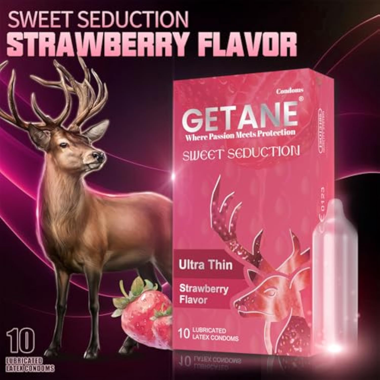 | Strawberry Flavor For Extra Pleasure: Infused With A Delightful Strawberry Taste, Condoms Provide A Fun And Sweet Sensory Experience, Perfect For Passionate Moments. | | Ultra-Thin Design: Crafted To Be Ultra-Thin, Condoms Deliver Heightened Sensitivity And A More Natural Feel, Enhancing Intimacy. | | Premium Natural Rubber Latex: Made With High-Quality Latex For Strength, Flexibility, And Trusted Protection During Every Intimate Encounter. | | Standard Size Fit: 53 Mm Width For A Snug And Secure Fit, Offering Comfort And Reliability For Most Men. | | Ideal For Safe Flavorful Moments: Whether You’Re Looking For Enhanced Intimacy Or A Flavorful Experience, Strawberry Flavored Condoms Are Your Ideal Partner For Unforgettable Moments. | |