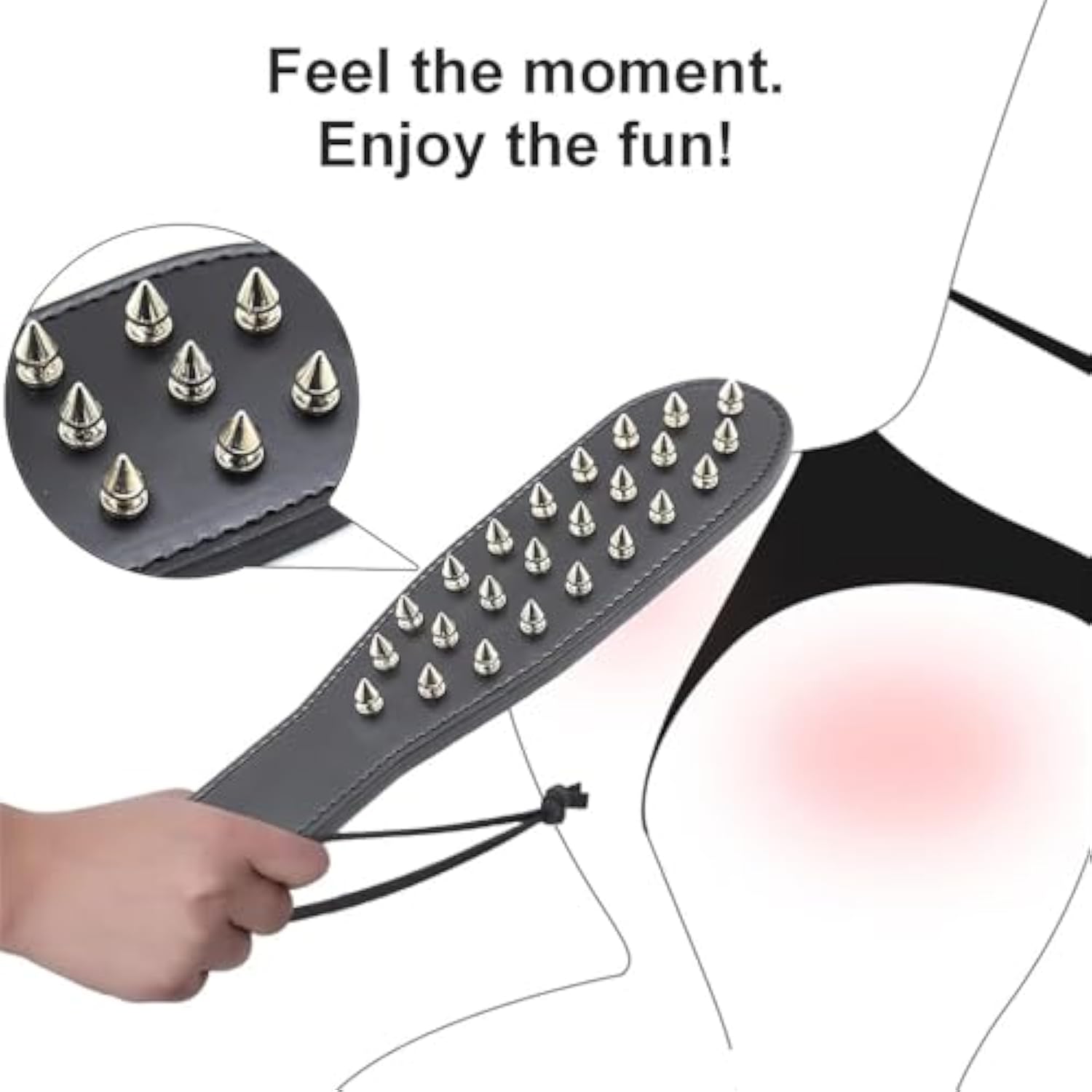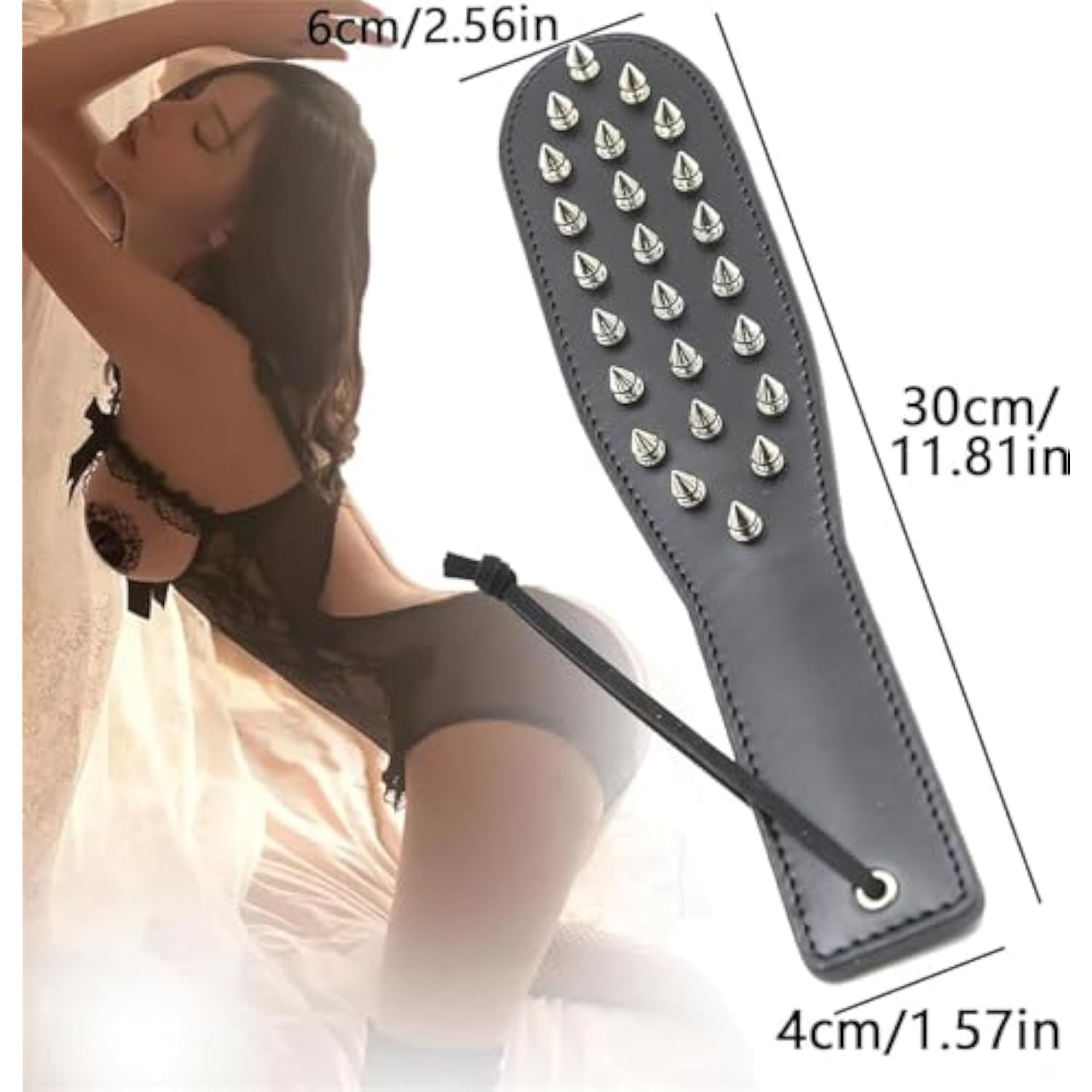 - High-Quality Sm Paddle: The Whips Are Made Of High-Quality Pu Leather And Metal Material, Which Is Very Soft, Non-Toxic And Odourless. Double-Sided Design, Smooth On One Side And Rivets On The Other, Double Enjoyment. Total Length: Approx. 30 Cm, Approx. 6.5 Cm Wide. Increase Sex Stimulation