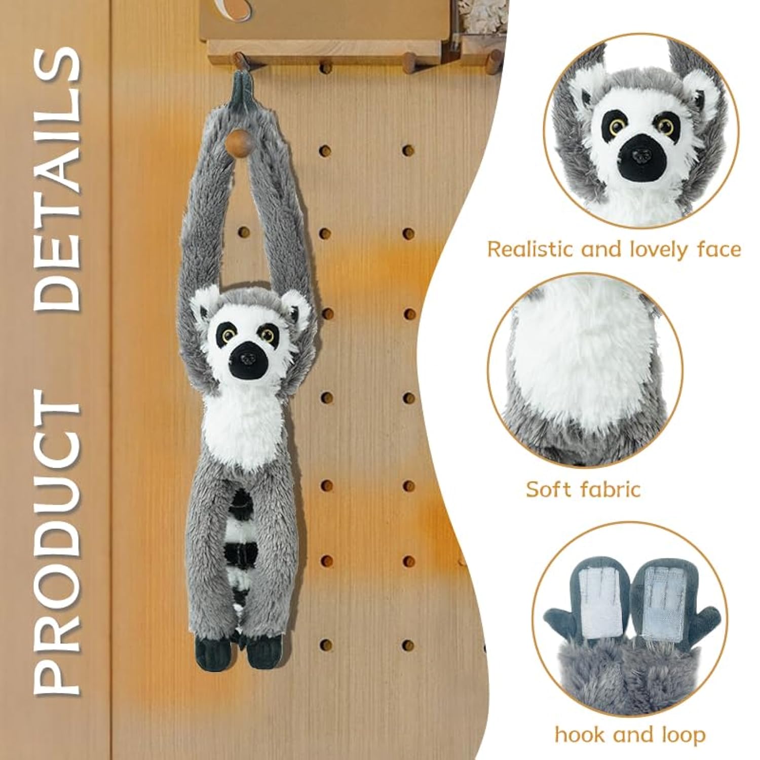Stuffed Lemur Toy Hanging Stuffed Animal, Hooks And Stuffed Animals With Rings For Kids, Gifts For Boys And Girls,Lemur Plush Decoration Toys Hanging 20Inches